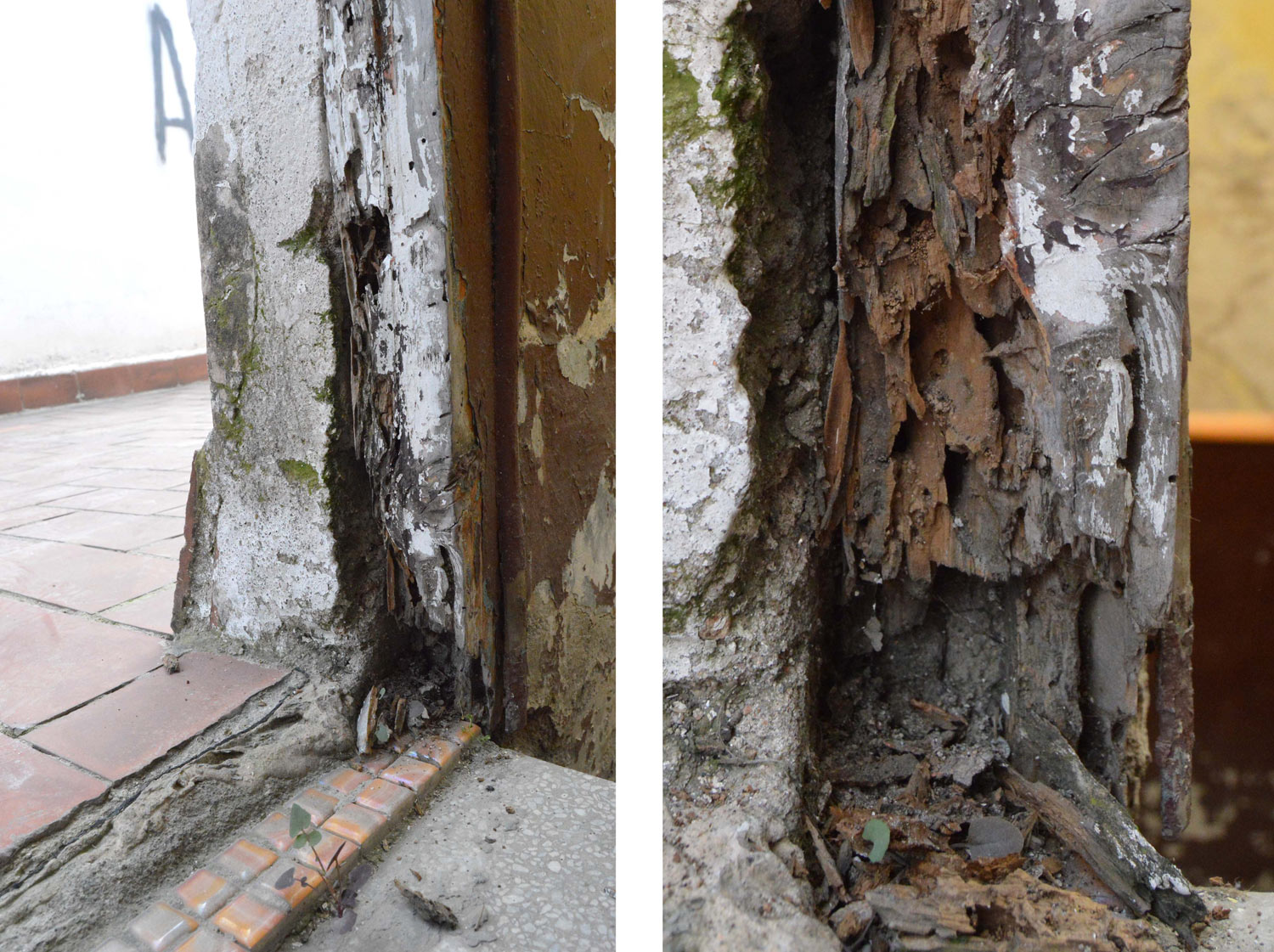 Por mi experiencia, las afectaciones en viviendas suelen encontrarse principalmente en madera que está en contacto o cerca del exterior y con cierto grado de humedad. Un caso típico es encontrar la colonia instalada en los marcos de puertas y ventanas. Y también encontrar afectaciones en vigas que se encuentran cerca de estas vías de entrada. En una ocasión estaban localizadas en una pequeña zona de un parquet que quedaba junto a la puerta de una terraza.