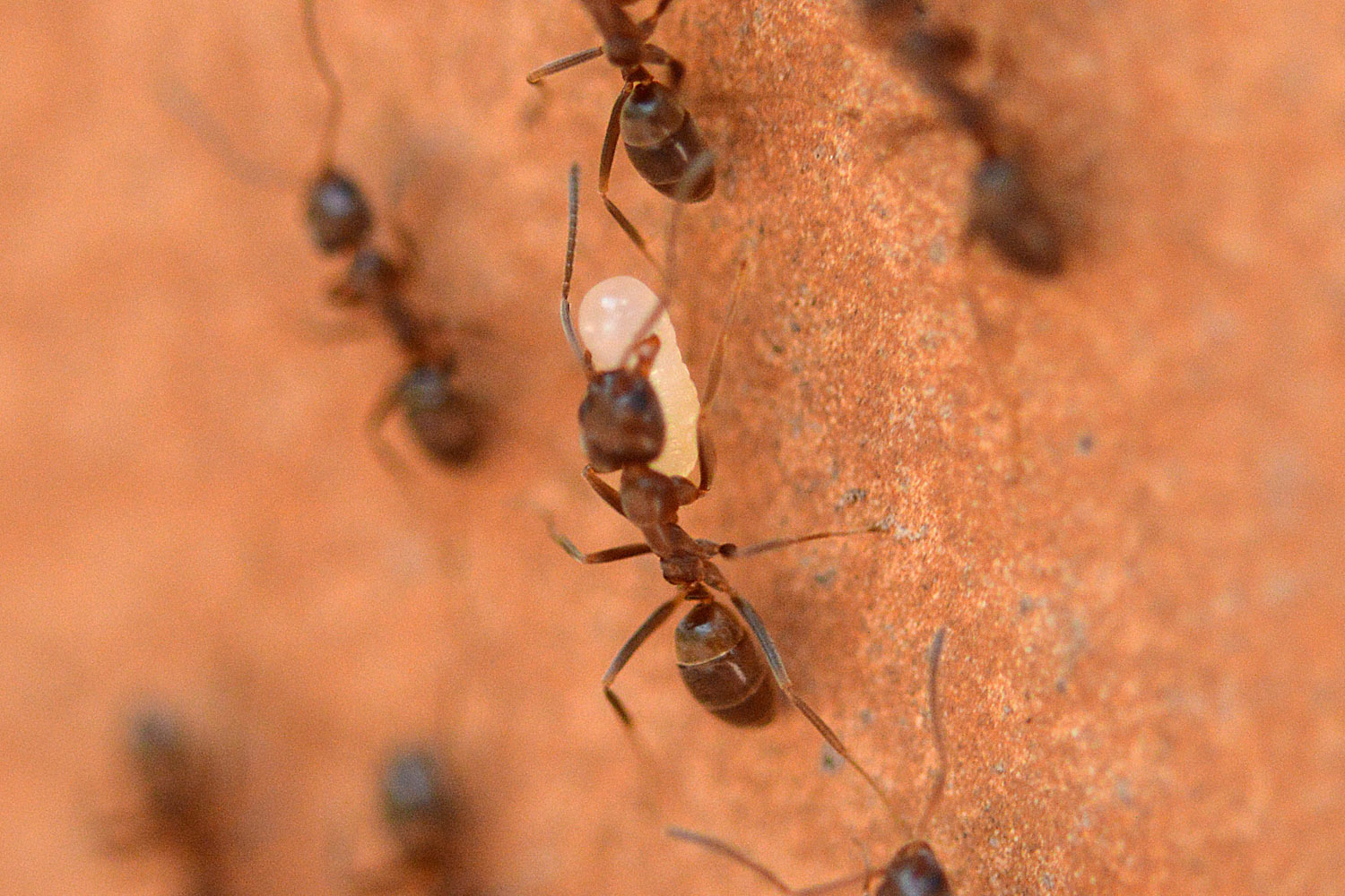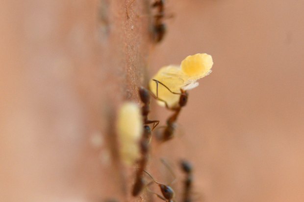 Fig 5. Obreras transportando huevos./ C. Pradera 05-2017