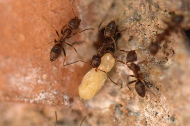 Si observamos bien las imágenes veremos que las obreras transportan tres tipos diferentes de ninfas. Llevan ninfas de obrera, de macho y de reina. Como bien sabemos, Linepithema humile es una especie poligínica que funda nuevas colonias mediante gemación. Esto significa que una hembra fecundada se aleja unos metros de su colonia de nacimiento para fundar otra nueva. Aunque esta colonia no hace vida a parte, sino que está conectada con las otras y las obreras circulan libremente entre ellos. Durante el tiempo cálido la colonia se expande. Y cuando llega el invierno se contrae. Es una especie nómada. Pero las reinas no solo sirven para fundar nuevas colonias, sino también para refundar las ya existentes, ya que durante la primavera se da un proceso peculiar y es que las obreras ejecutan al 90% de sus reinas. Interesante.