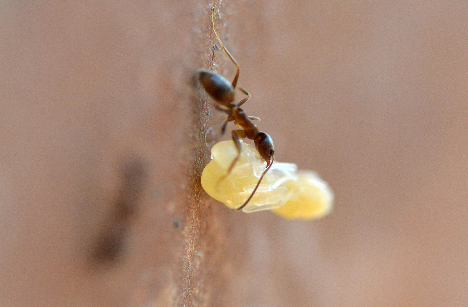 Fig 4. Obrera transportando larva./ C. Pradera 05-2017