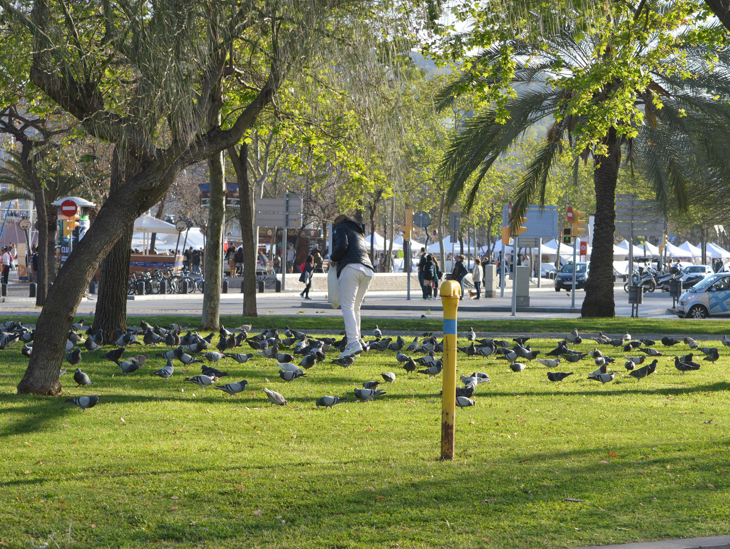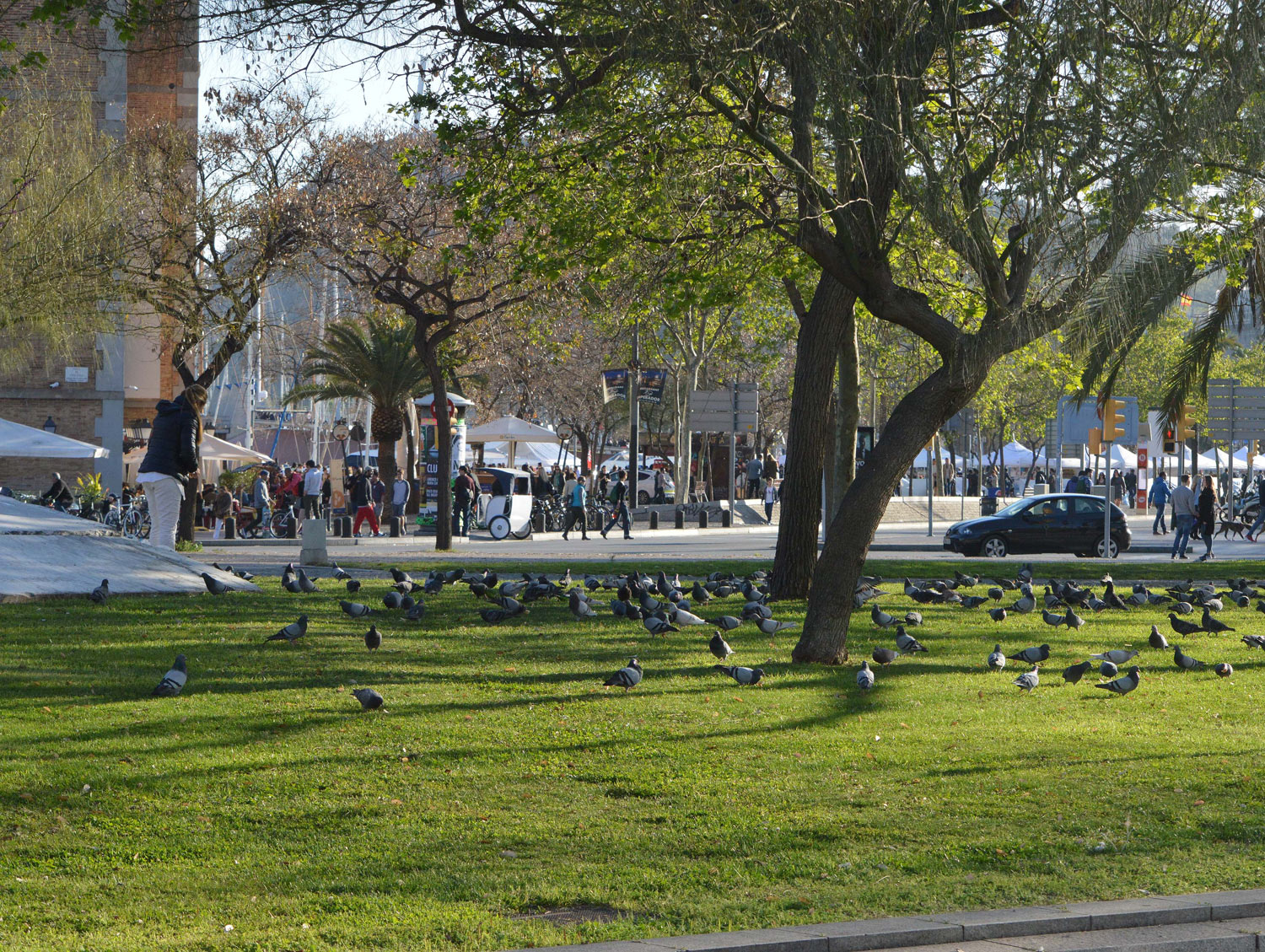 El mes de abril del año pasado encontré una persona que alimentaba paloma doméstica (Columba livia) en la plaza Pau Vila de Barcelona (figura 2). Salía de la parada del metro de la Barceloneta. Debía ser sobre las siete de la tarde. Y me dirigía hacia el paseo marítimo para pasear. Al ver la escena, tomé unas fotografías de la situación.