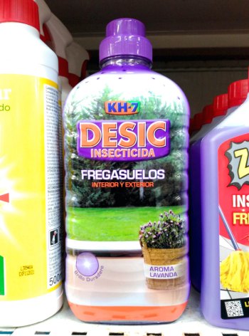 El primer producto comercializado para uso con la fregona fue Desic Insecticida Fregasuelos de KH Lloreda SA de Canovelles (figura 1). La primera vez que lo vi fue hace 6 o 7 años en un bar al que fui a realizar un control de cucaracha alemana (Blattella germanica). El encargado del bar me dijo que él había intentado controlar las cucarachas con un producto. Le pregunté con cuál. Y me dijo que con un insecticida que se mezclaba con el agua de fregar. Al escucharlo me quedé a cuadros. No conocía ese producto. Y además en un bar no se pueden utilizar productos insecticidas de uso doméstico. Entonces le pedí si podía ver el producto. Me enseñó una garrafa de 5 litros de Desic Insecticida Fregasuelos con número de registro del Ministerio de Sanidad 09-30-05372. En su composición aparecía permetrina al 0’35%. Le dije cómo había llegado la garrafa hasta el allí. Y me respondió que a través del suministrador de productos de limpieza.