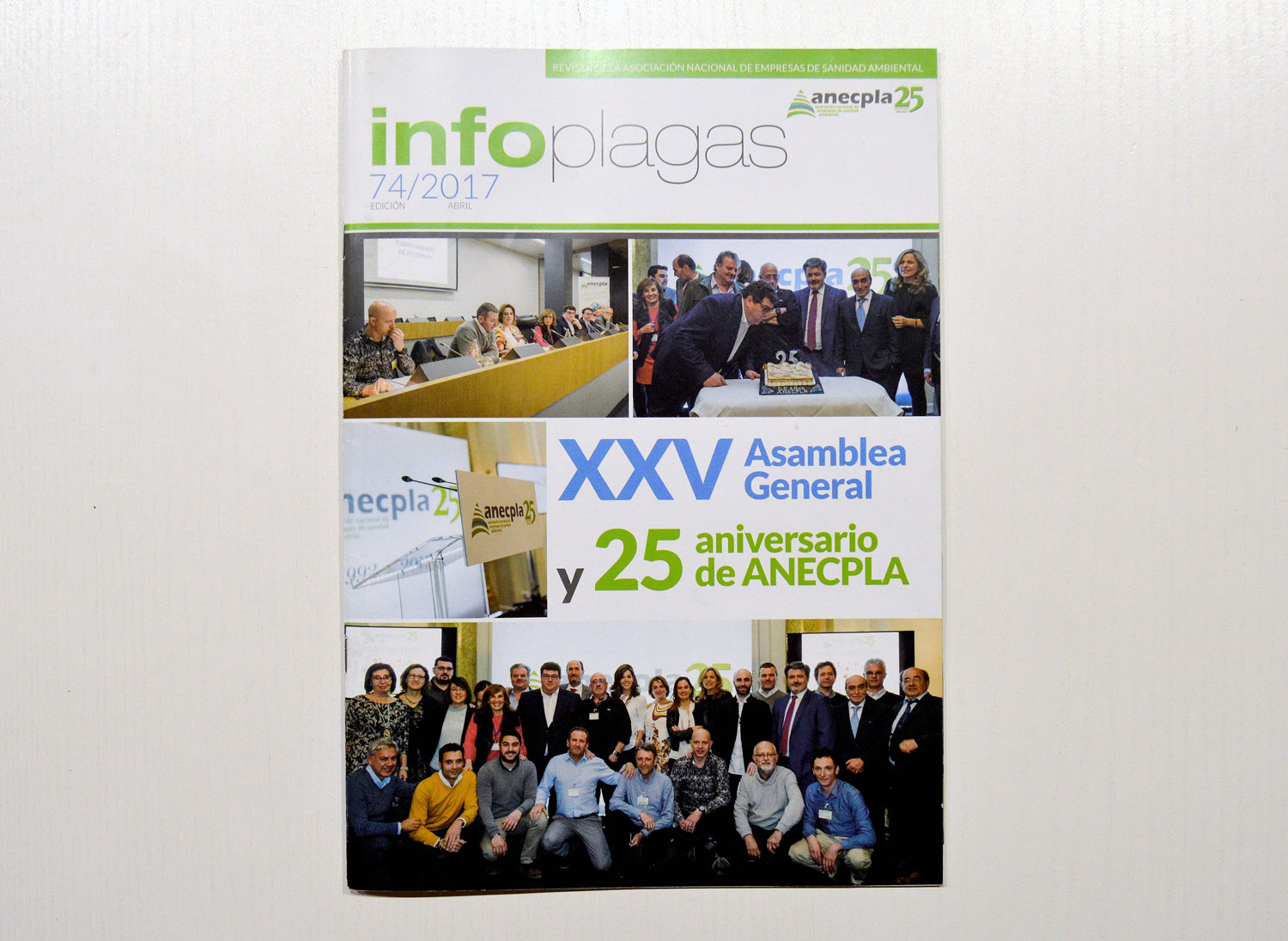 He tenido la oportunidad de leer el último número de Infoplagas, la revista de la Asociación Nacional de Empresas de Control de Plagas (ANECPLA). Como se desprende de la portada (figura 1) esta asociación ha cumplido 25 años desde su fundación. Se trata de la asociación más importante del sector de control de plagas.
