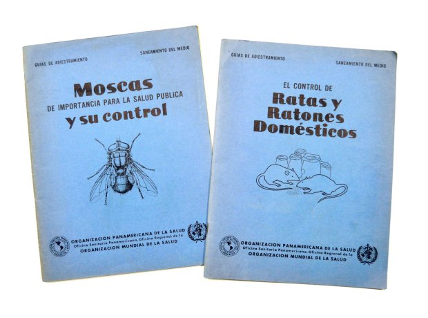 Estas publicaciones fueron traducidas porque existía un vacío que era necesario llenar por falta de iniciativa de los países a los que iba dirigido. Mostraba la gran diferencia cultural y económico de los EUA respecto del resto de países de América. Muchos textos tenían una finalidad práctica como los que fueron publicados para el control de vectores. En la imagen superior (figura 1) se pueden ver dos de estos manuales que he tenido la suerte de poder adquirir. Se trata de guías de adiestramiento encuadradas dentro de la serie ‘Saneamiento del medio.’ Estas guías se convirtieron en textos de referencia. Desconozco cuántos ejemplares se editaron de cada uno. Pero algunos tuvieron gran difusión y varias reimpresiones. Y también llegaron a España.