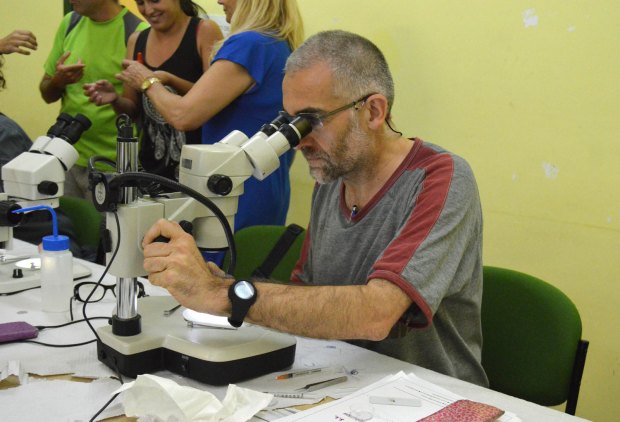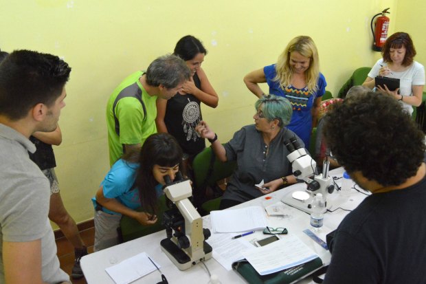 Fig 4. Rosario Melero observando el resultado de una disección./ C. Pradera 07-2017