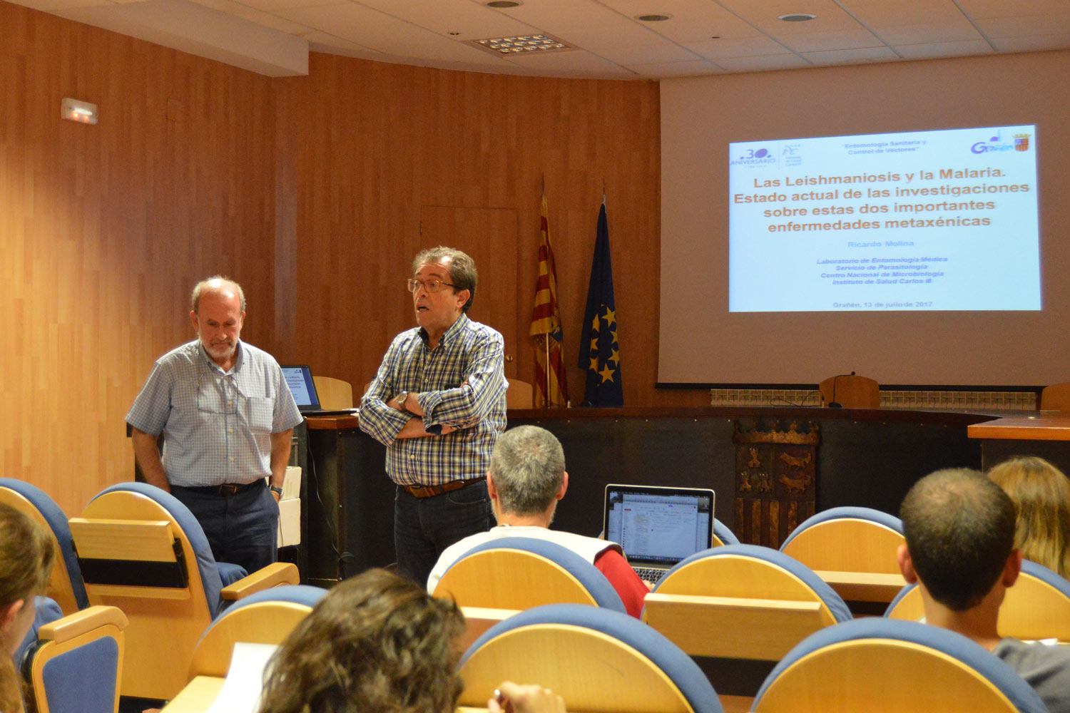 Fig 1. 13 de julio de 2017, cuarto día de curso sobre Entomología Sanitaria y Control de Vectores de la Universidad de Zaragoza celebrado en Grañén (Huesca). La mañana empezó con una grata sorpresa. El compañero de curso Helder Cortés, profesor de Parasitología de la Universidad de Évora (Portugal) nos dio una charla sobre diversas investigaciones realizadas por él. Muy interesante todo lo que nos explicó sobre diversos parásitos de los que desconocía su existencia./ C. Pradera 07-2017