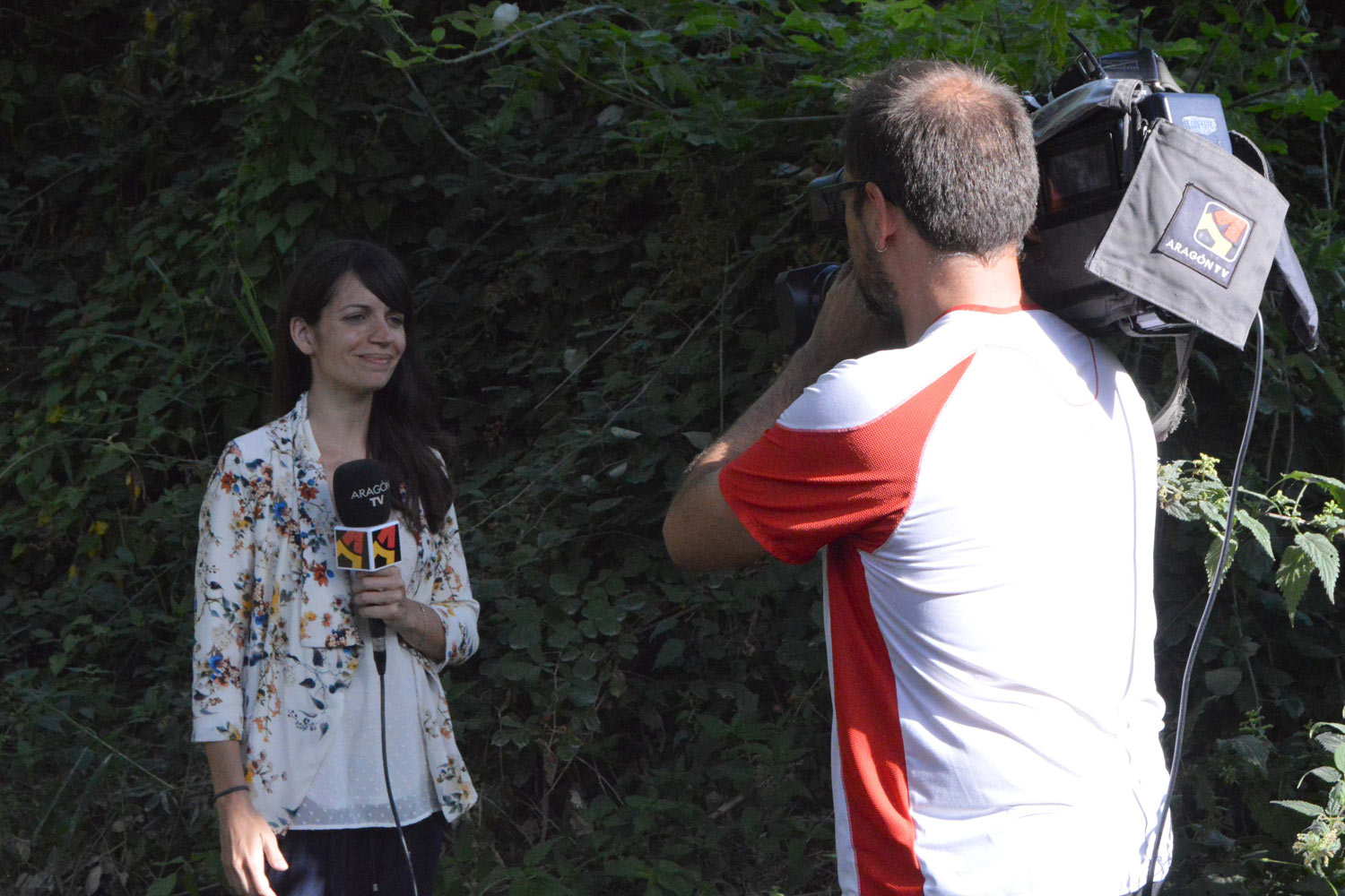 Fig 11. Durante el primer y último día, el curso fue considerado noticia. Fue cubierto por el canal aragonés Aragón TV. Ello demuestra el gran interés que hay en la mosca negra y el poder de convocatoria de este gran evento./ C. Pradera 07-2017