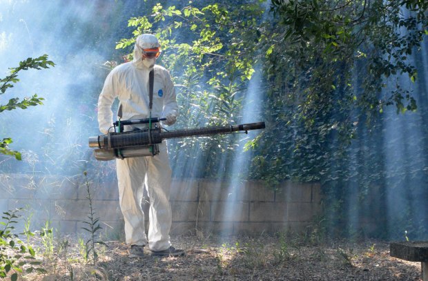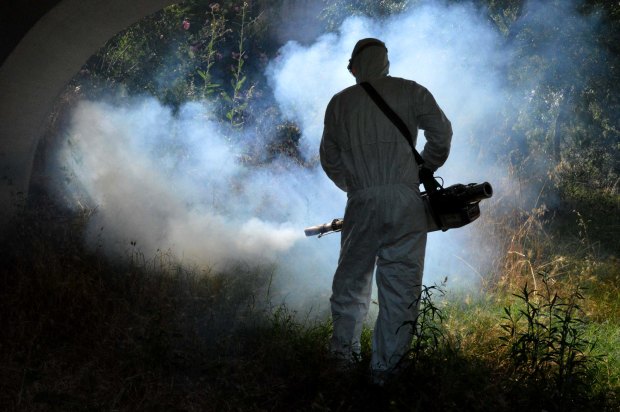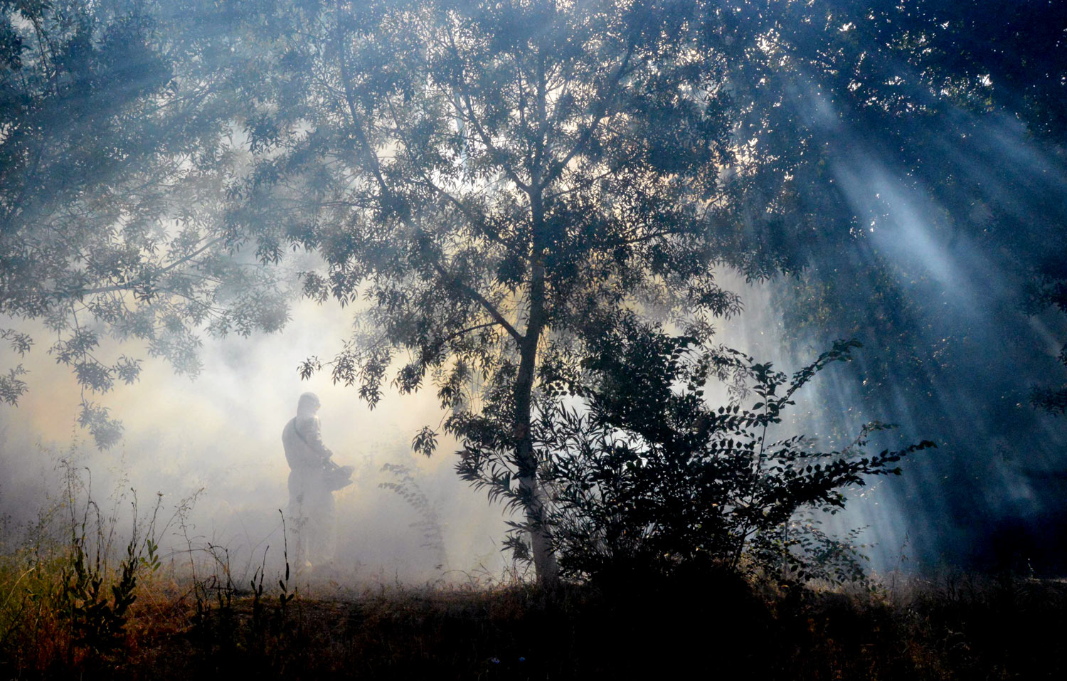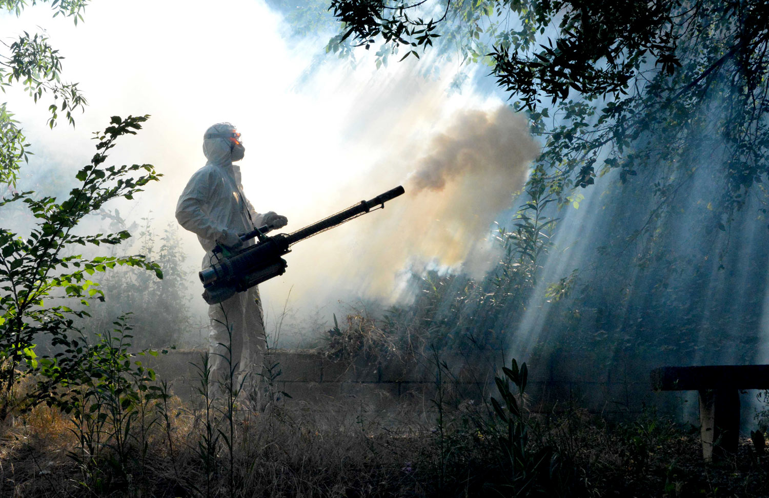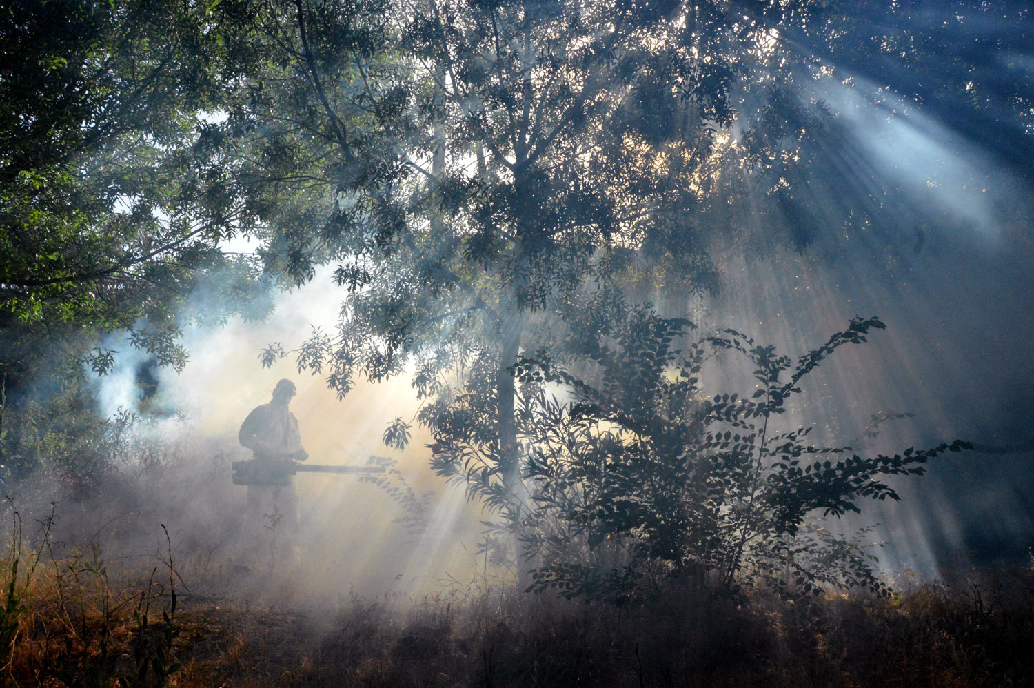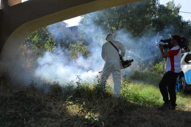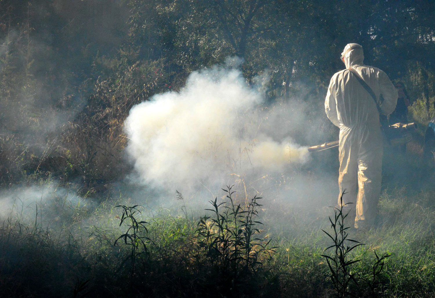 Fig 12. Para proveer de imageniería a la televisión, se realizó una aplicación adulticida mediante una máquina de termonebulización./ C. Pradera 07-2017