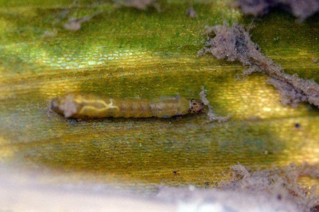 Fig 10. Pupa de S. erythrocephalum. Y larva probablemente de la misma especie./ Desinsectador 08-2017
