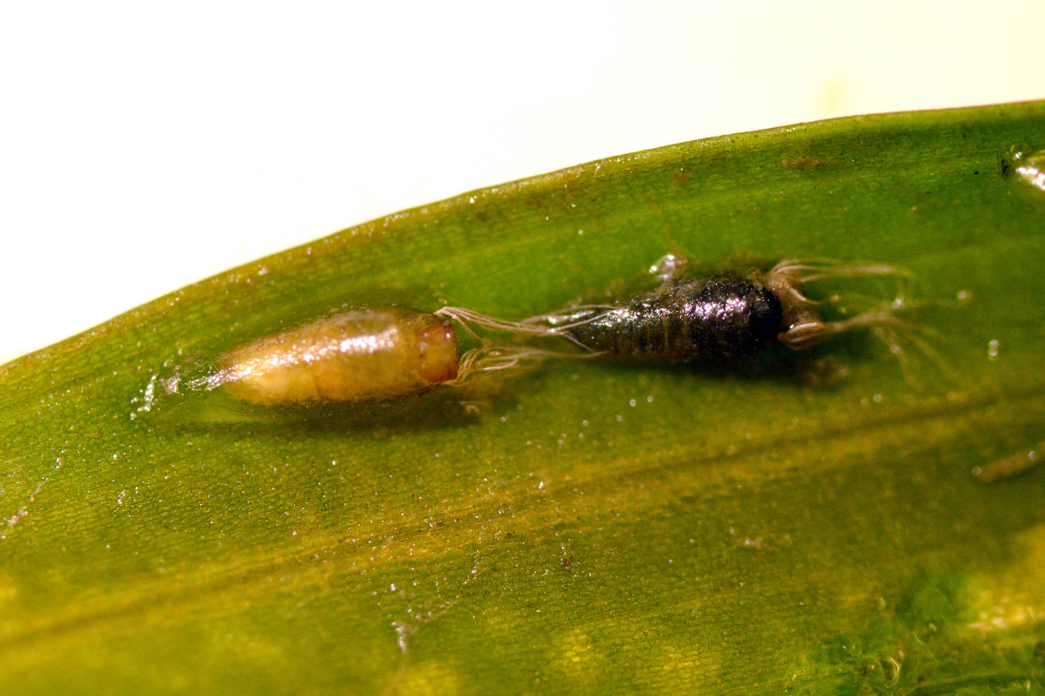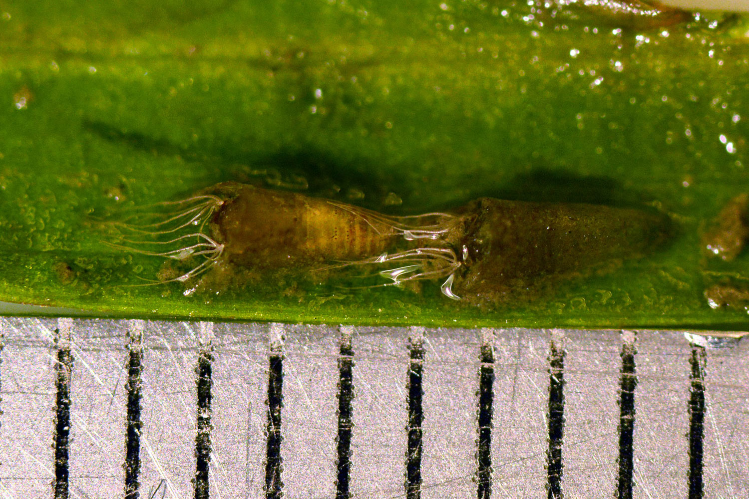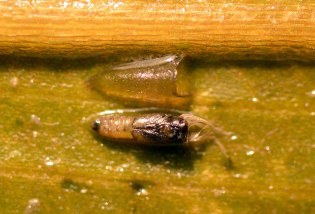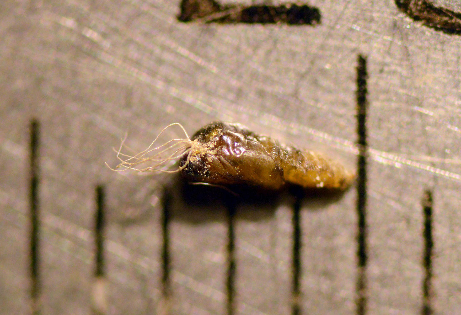Fig 7. Dos pupas maduras de Simulium erythrocephalum. El adulto de esta especie es el principal causante de las molestias ocasionadas en el hombre, cuando la hembra necesita morder a personas para chupar su sangre. Esta aportación de energía le permite madurar los huevos para realizar la puesta./ Desinsectador 08-2017