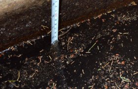 En la primera imagen se puede ver un registro de aguas pluviales que encontré la semana pasada. Levanté la tapa por curiosidad al ver cerca algunos adultos de mosquito tigre. Y al retirarla me encontré lo que se puede ver en la imagen número 2. Mucha agua acumulada. Y también muchas larvas y pupas de culícido. Este registro medía unos 60 x 60 cm. Y como se puede ver en la imagen número 3, la profundidad del agua acumulada era de unos 14 cm. Así que allí había cerca de 50 litros de agua en los que había materia orgánica vegetal. Todo ello a la sombra y fresquito. Desconozco cuánto tiempo puede tardar en evaporarse el agua acumulada. Pero sí estoy seguro de que tardará semanas. En resumen, un excelente lugar para el desarrollo de varias generaciones de mosquitos.