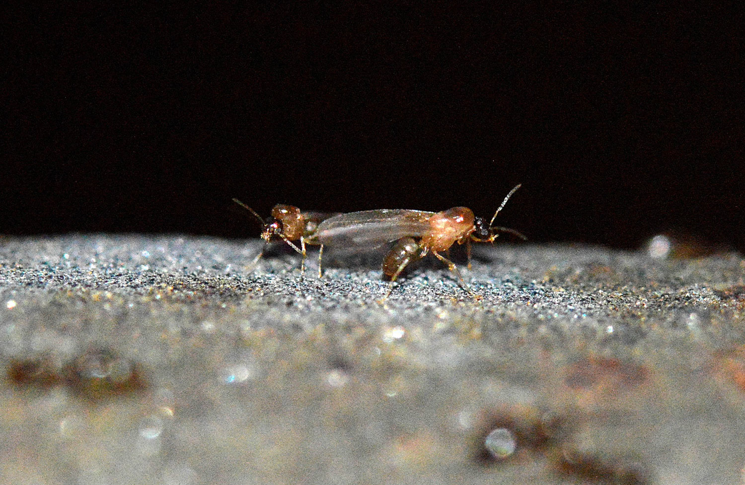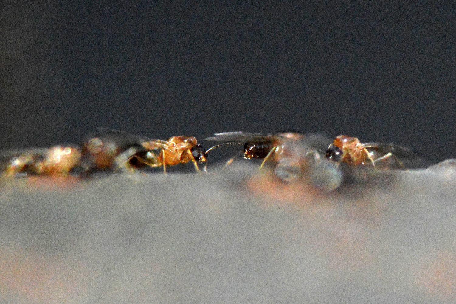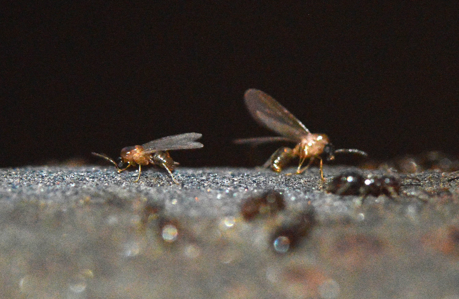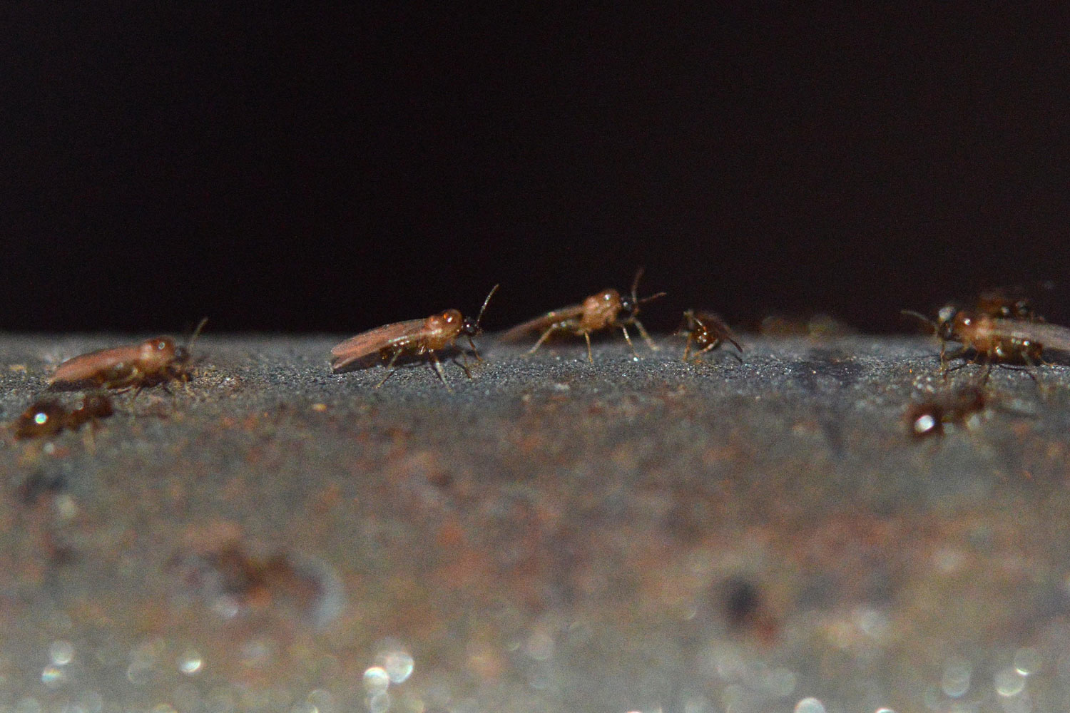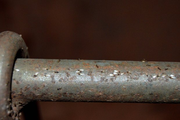 Fig 28. Hembras sin alas y obreras de Brachymyrmex patagonicus en la barandilla./ C. Pradera 06-2017