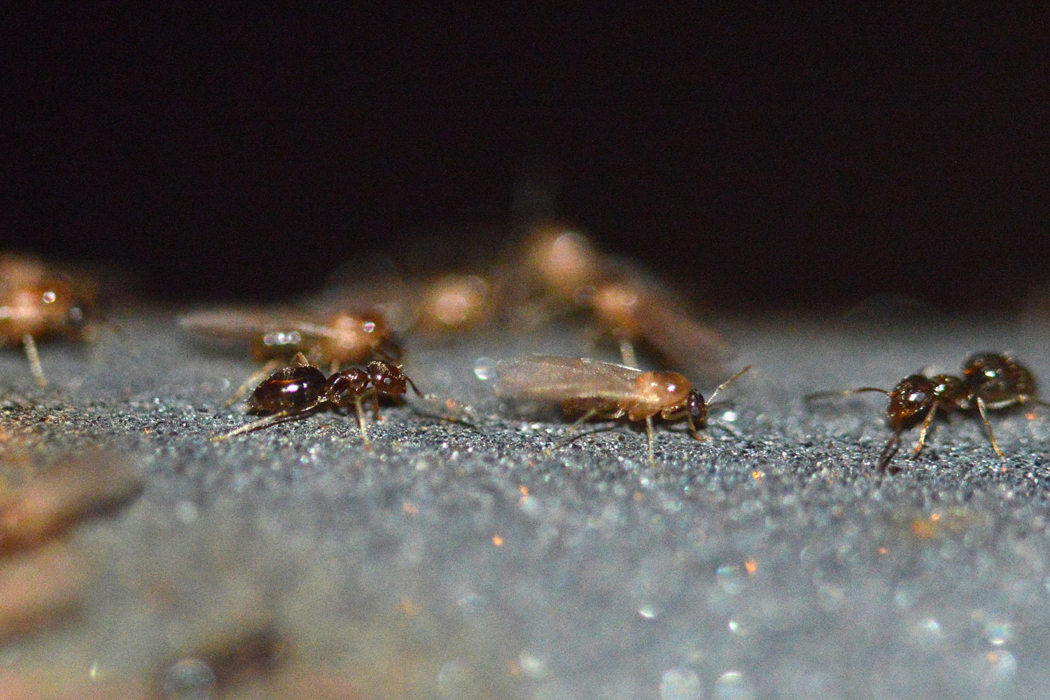 El 24 de junio pasado estuve en Almería junto a Xavier Espadaler y Agustín Tena para observar a la hormiga exótica Brachymyrmex patagonicus que descubrimos el pasado año. Dio la casualidad que justo ese día se estaba dando la enjambrazón o salida de reproductores. Así que pudimos observar este momento tan importante en la reproducción de una colonia de hormigas. Esto fue observado en la Plaza de Colón, en el barrio de Ciudad Jardín. En esta entrada muestro un vídeo y fotografías para hacerse una idea.
