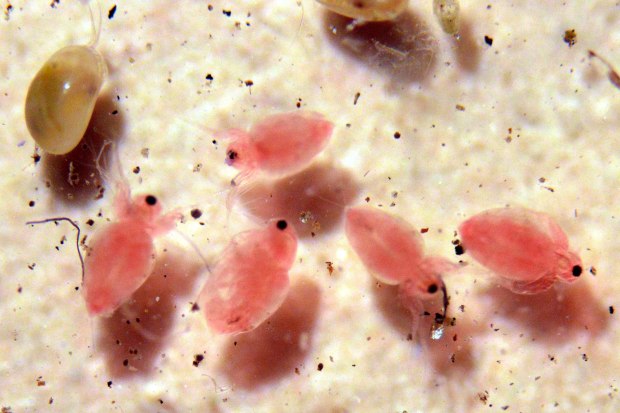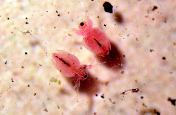 Ayer por la tarde estaba en Hospitalet de Llobregat (Barcelona), cuando vi un par de mosquitos tigre (Aedes albocpictus) acercarse a mis piernas. Me los saqué de encima y entonces busqué el origen en los imbornales sifónicos que tenía cerca. Observé, pero no encontré larvas de culícido. Pero en uno de ellos, se podía ver un centelleo sobre la superficie del agua. Minúsculos y rápidos movimientos ondulaban el agua. Entonces levanté la reja y con un recipiente improvisado recogí un poco de agua de la superficie. Pude ver milimétricos seres rosados que avanzaban velozmente en todas direcciones. Se trataba de crustáceos pertenecientes al orden Cladocera que coloquialmente denominamos pulgas de agua.