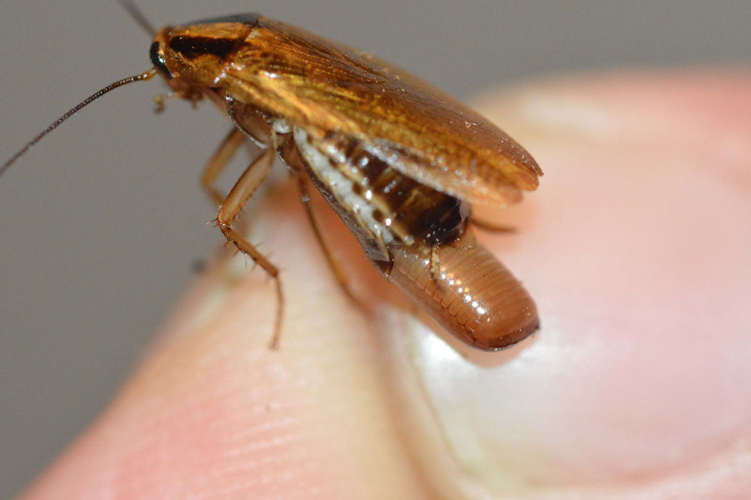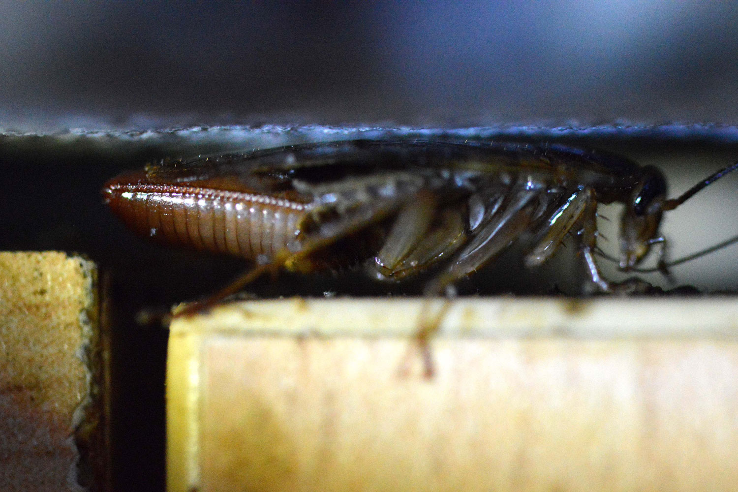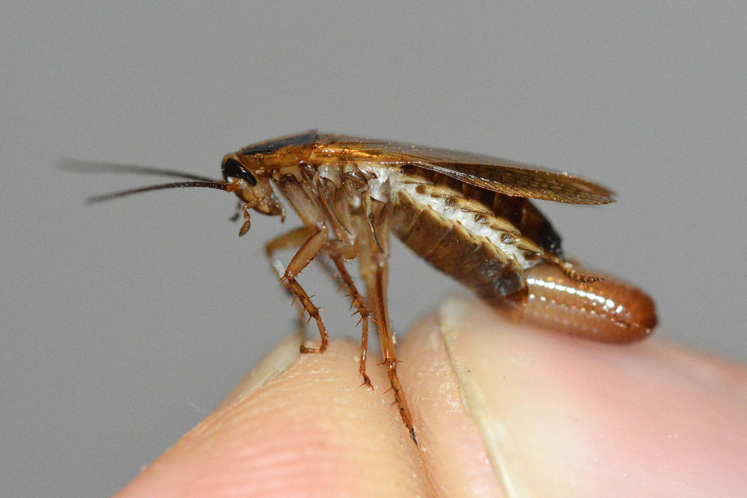 Fig 9. Cacé una hembra de Blattella germanica para poder tomarle algunas fotografías. Sin duda, es un animal interesante y bien adaptado al medio urbano./ C. Pradera 09-2017