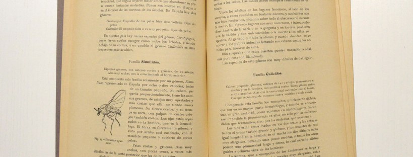 Podría hablar largo sobre esta interesante obra. Tan solo voy a destacar unos pocos aspectos que me han llamado la atención. En el apartado dedicado a los flebotomos, se describe su importante papel como transmisor de enfermedades. Escribe: «Estos animales transmiten la fiebre de los tres días, el botón de Oriente y se sospecha su intervención en otras Leihsmaniosis como el Kala-azar infantil, aunque todavía no esté probado». El autor está muy bien informado y sospecha como probable algo que tardaría aún años en demostrarse. Hemos de situar esta obra en un momento muy emocionante para la ciencia. En el cambio de siglo XX se había descubierto a los mosquitos y otros artrópodos como transmisores de enfermedades. En Inglaterra Ross dio a conocer el ciclo de transmisión del parásito que provocaba el paludismo. Y en Cuba, un grupo de investigadores capitaneado por Reed probó que los mosquitos transmitían la fiebre amarilla. Había mucho por estudiar.