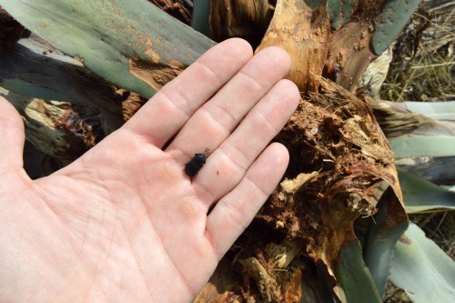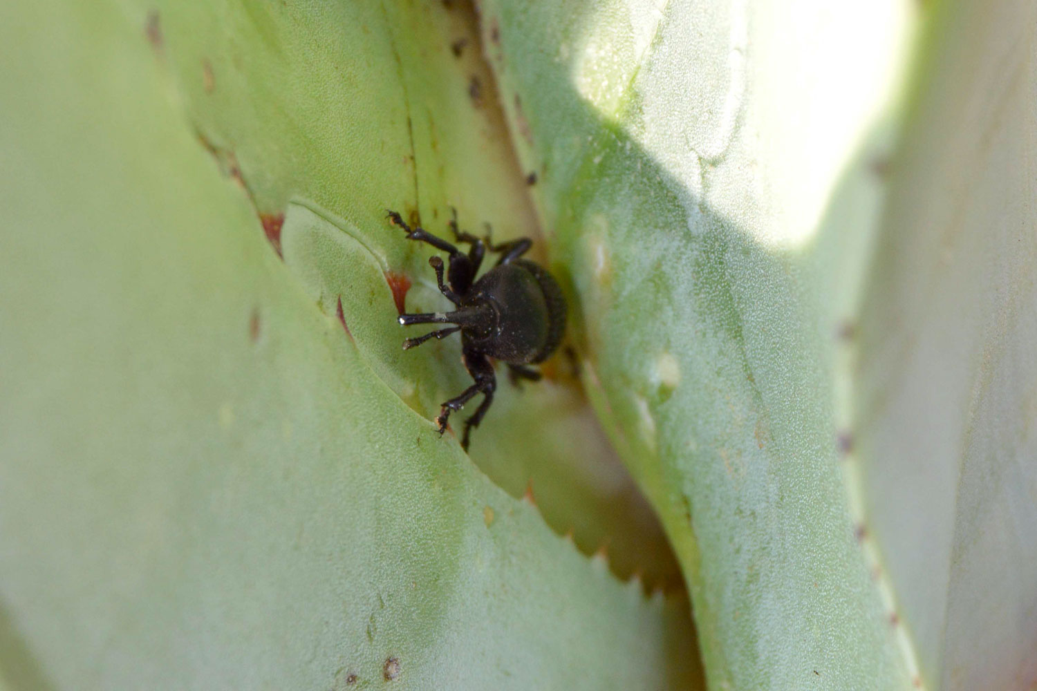 El pasado fin de semana disfruté de unos días en el Alt Empordà (Girona). Paseando por la costa, pude comprobar los estragos realizados por el picudo negro del agave (Scyphophorus acupunctatus). Aunque no me di cuenta de ello hasta que mi mujer me señaló un gorgojo negro que corría por el suelo. Lo recogí y le dije que probablemente se trataba del picudo negro del agave. Entonces levanté la cabeza y pude ver a mi alrededor los estragos causados por él. La gran mayoría de agaves estaban secos. Otros estaban moribundos. Y los menos, se mantenían vivos. Aunque dudo que lleguen al año que viene.