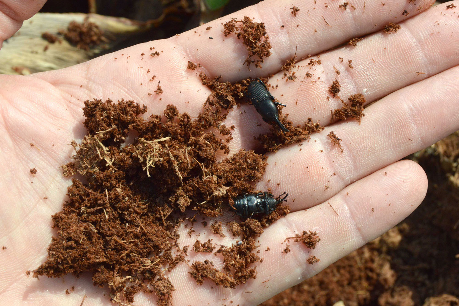 Fig 17. Adulto y larva de picudo negro del agave (Scyphophorus acupunctatus) en Vinaròs (Castellón)./ C. Pradera 04-2018