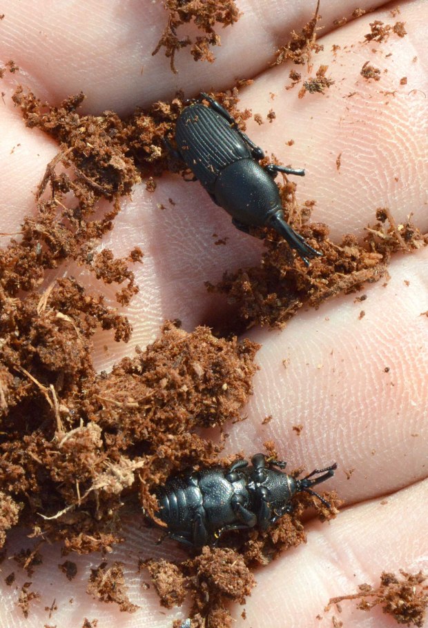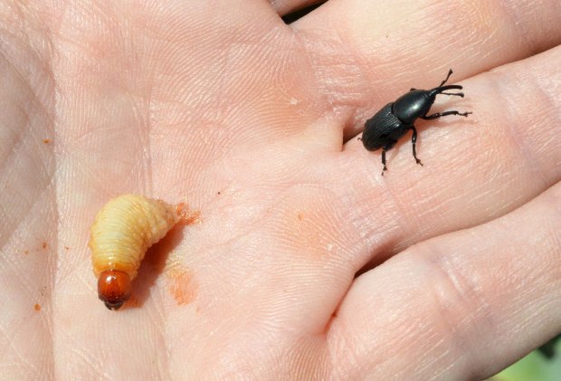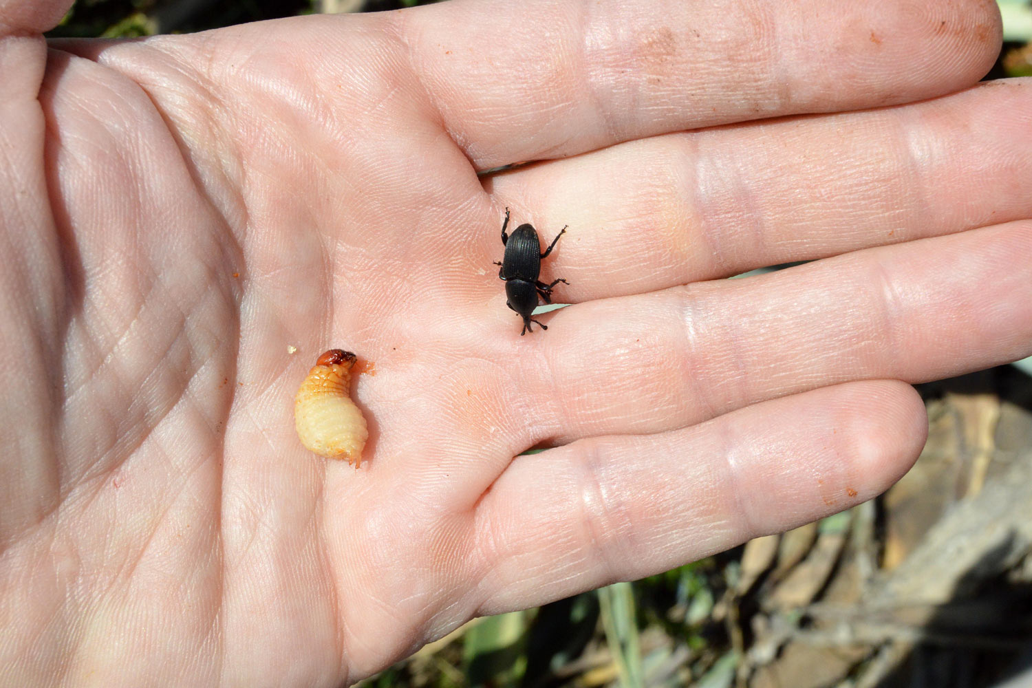 Fig 15. Adulto y larva de picudo negro del agave (Scyphophorus acupunctatus) en Vinaròs (Castellón)./ C. Pradera 04-2018