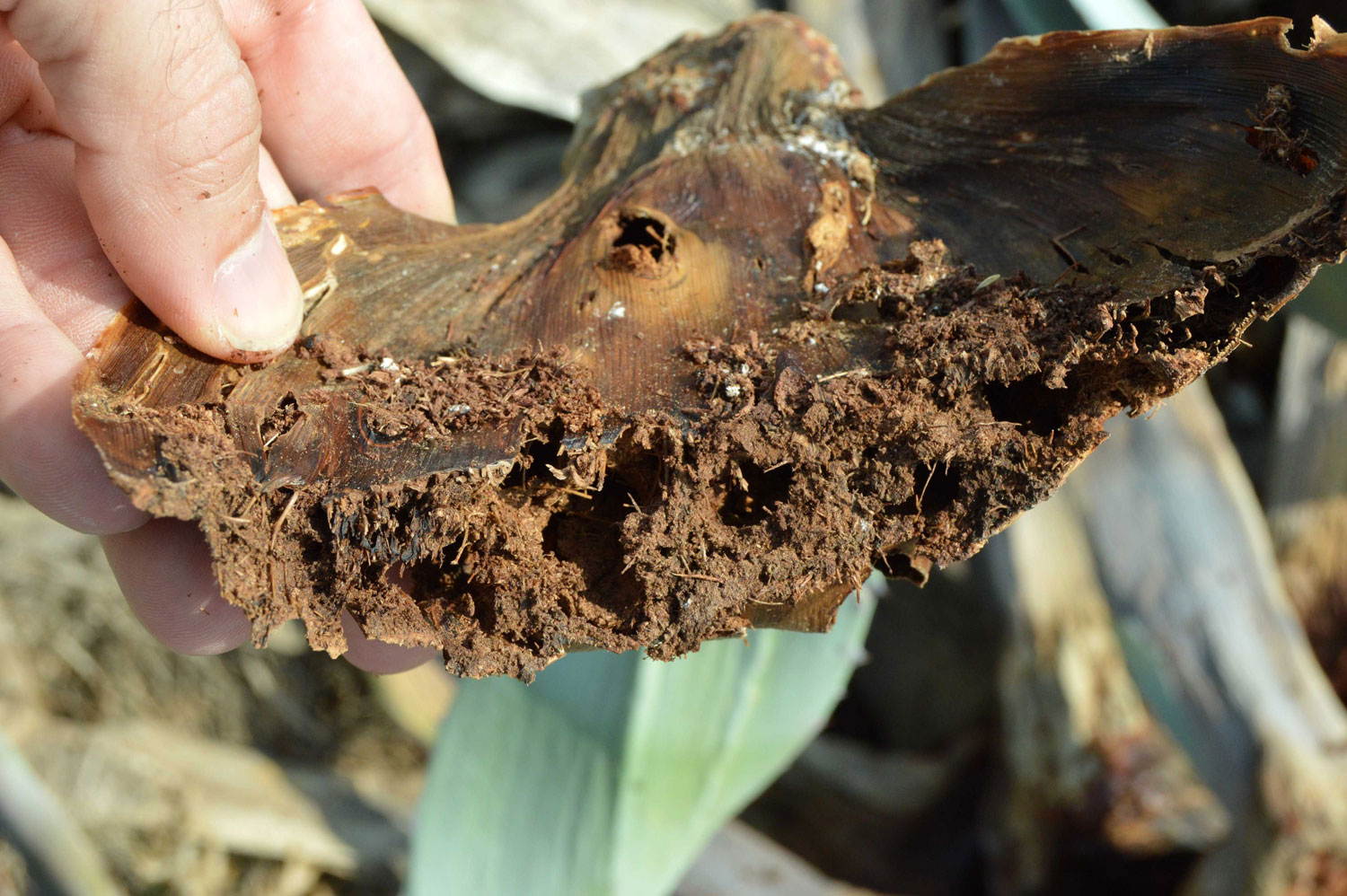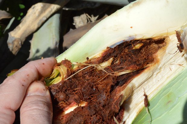 Fig 9. Estragos causados por el picudo negro del agave (Scyphophorus acupunctatus)./ C. Pradera 09-2017