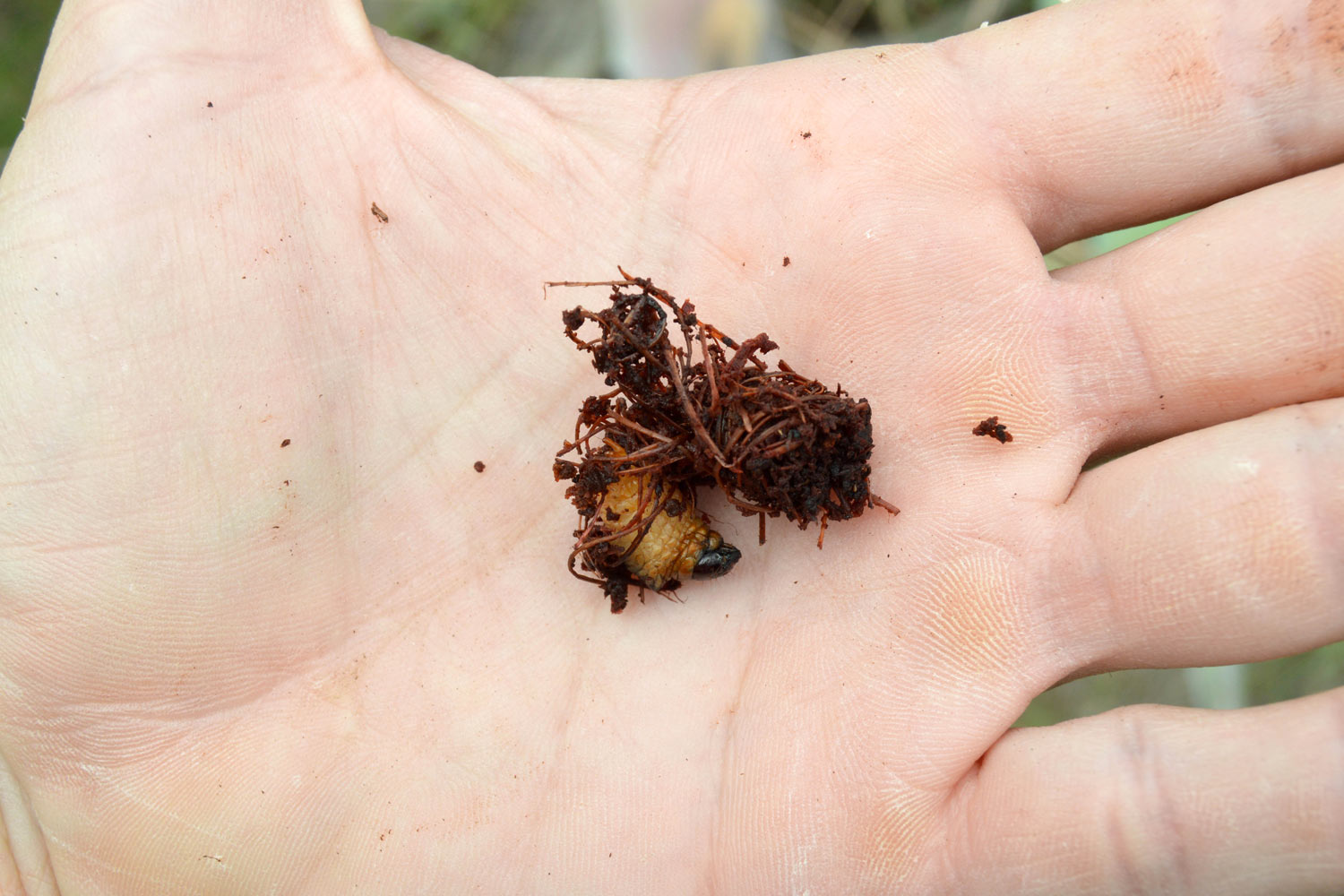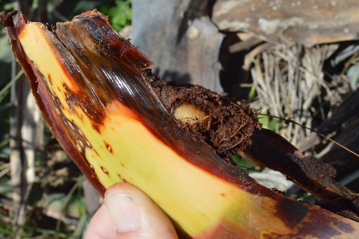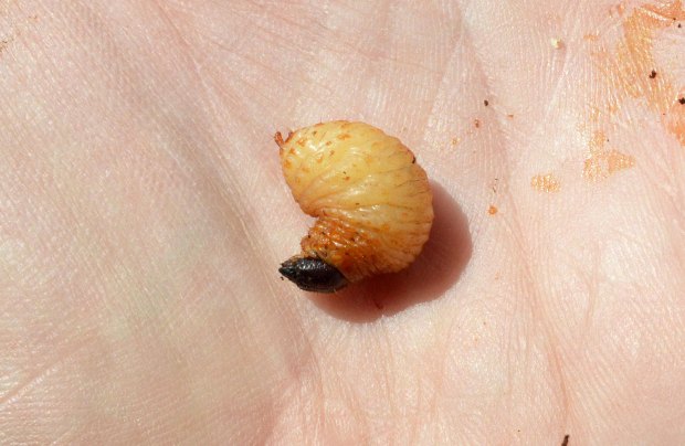 Fig 18. Larva de picudo negro del agave (Scyphophorus acupunctatus) en Vinaròs (Castellón)./ C. Pradera 04-2018