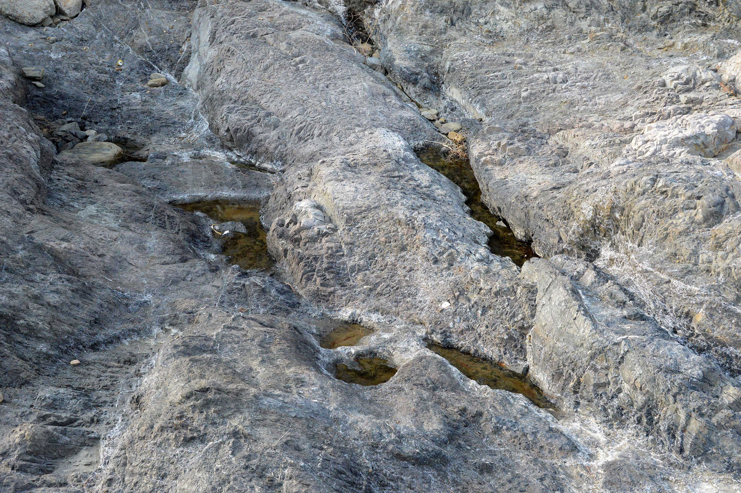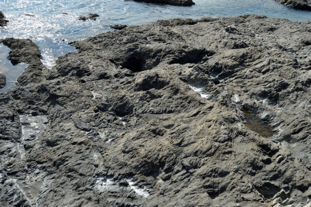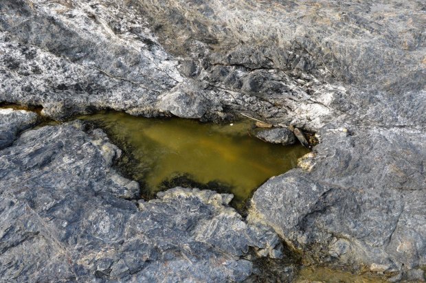 Fig 3. Rocas donde se forman charcos de agua salada donde cría el Aedes mariae./ C. Pradera 09-2017