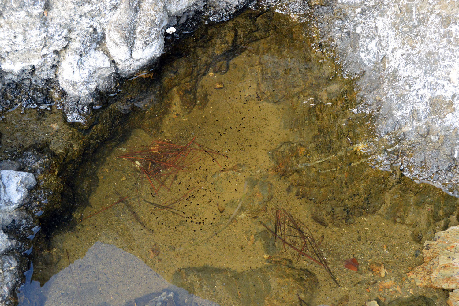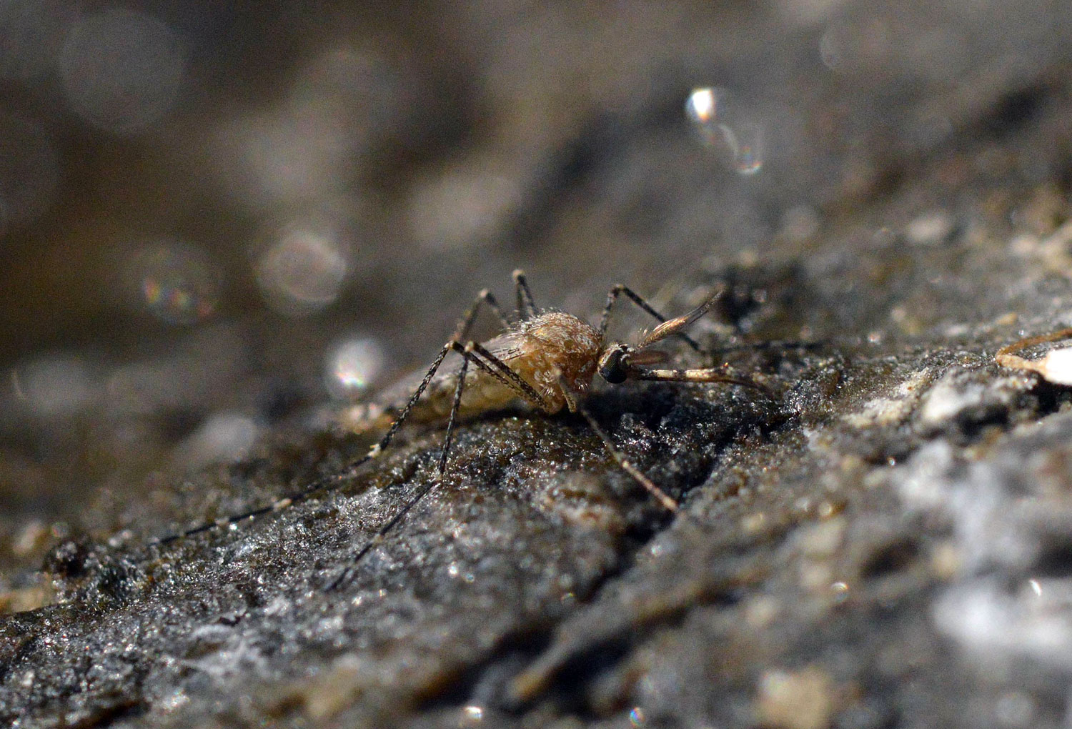 Fig 21. Machos recién emergido de Aedes mariae secándose en la roca./ C. Pradera 09-2017