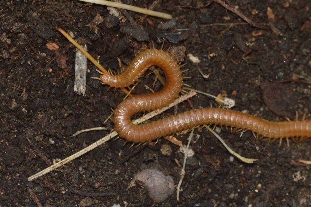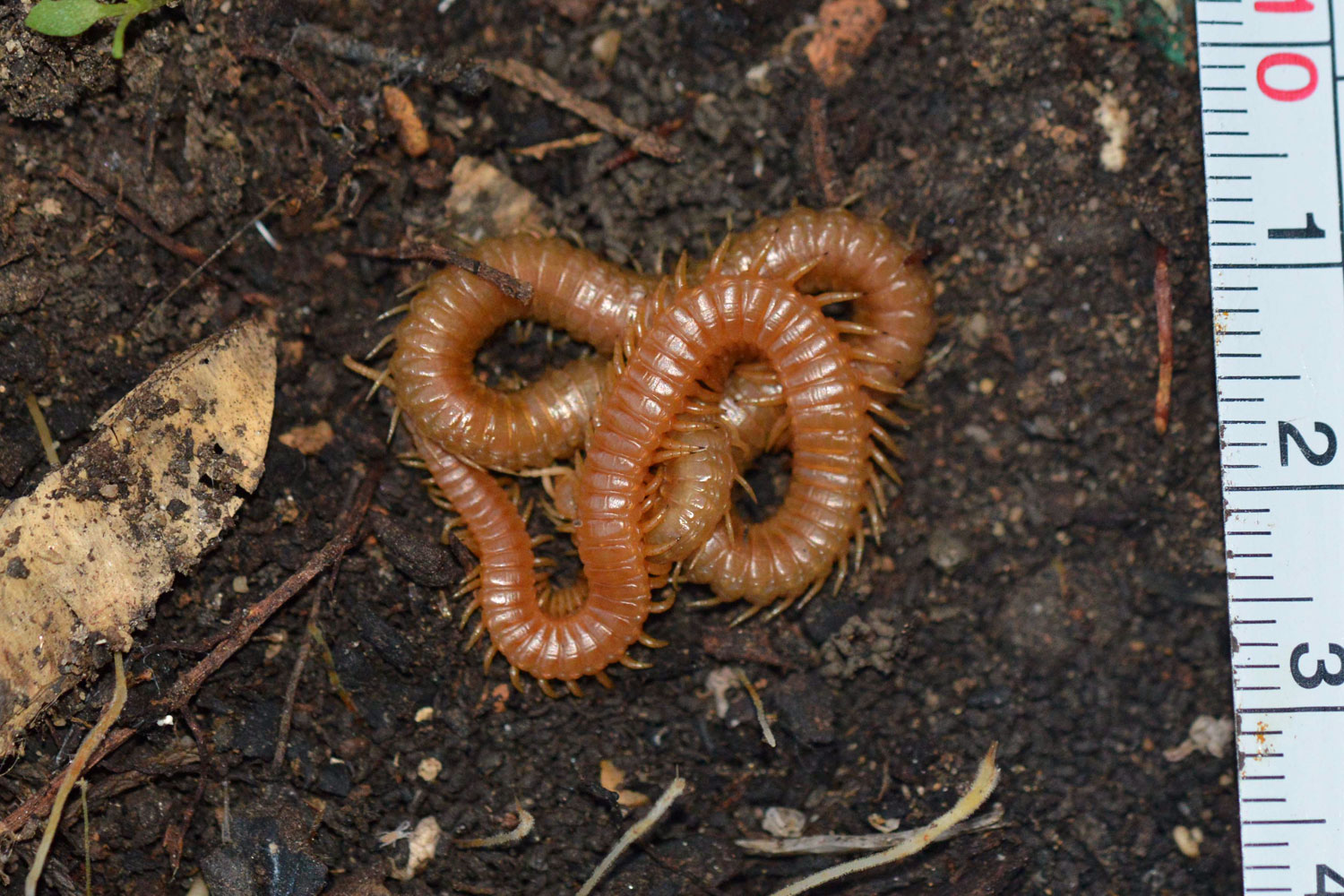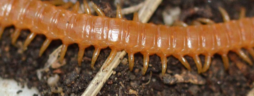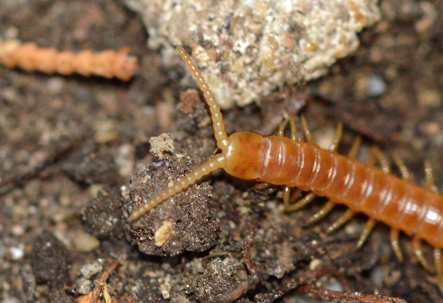 Fig 11. Ciempiés Haplophilus encontrado debajo de una madera en Sant Joan de Mollet, Baix Empordà./ C. Pradera 03-2021