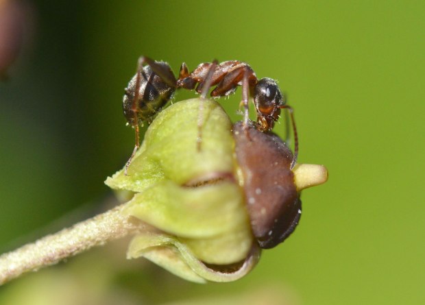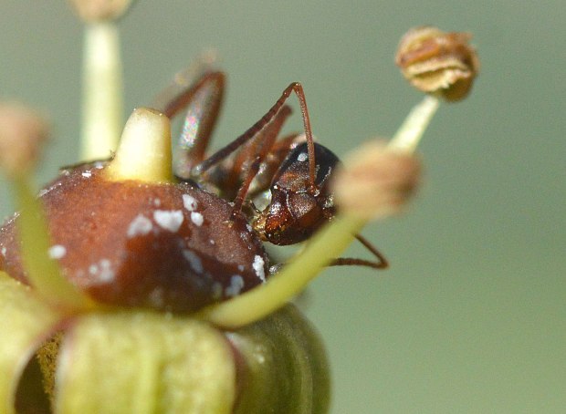 Fig 6. Obrera de la especie Formica rufibarbis en una flor de hiedra (Hedera helix)./ C. Pradera 11-2017