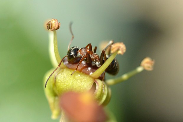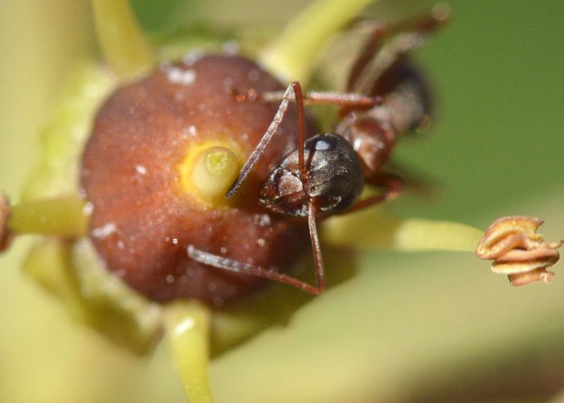 Fig 3. Obrera de la especie Formica rufibarbis en una flor de hiedra (Hedera helix)./ C. Pradera 11-2017