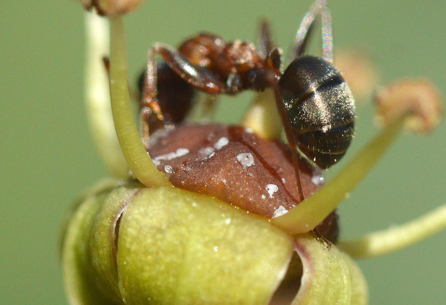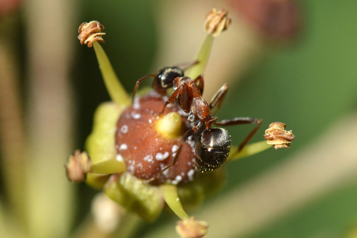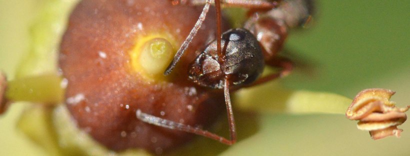 Fig 3. Obrera de la especie Formica rufibarbis en una flor de hiedra (Hedera helix)./ C. Pradera 11-2017