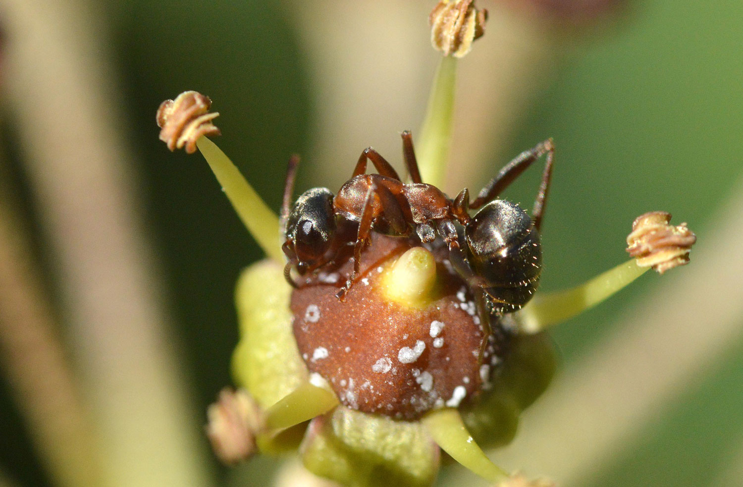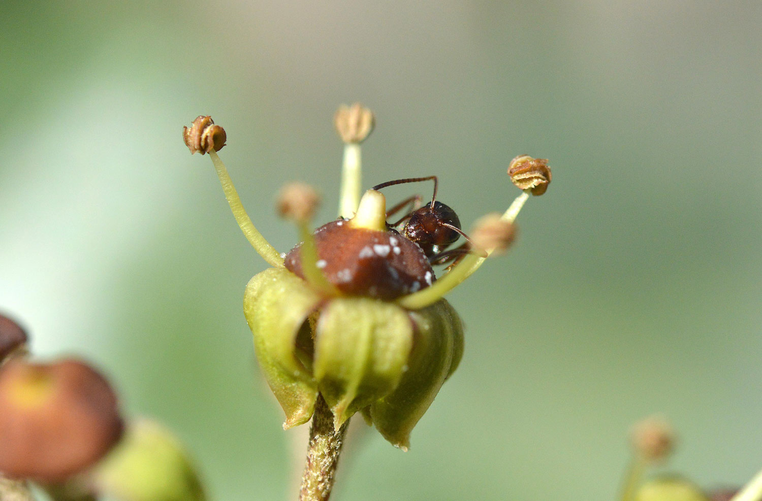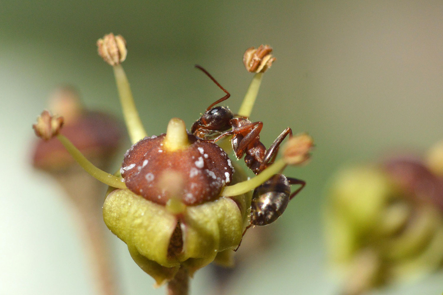 Fig 6. Obrera de la especie Formica rufibarbis en una flor de hiedra (Hedera helix)./ C. Pradera 11-2017