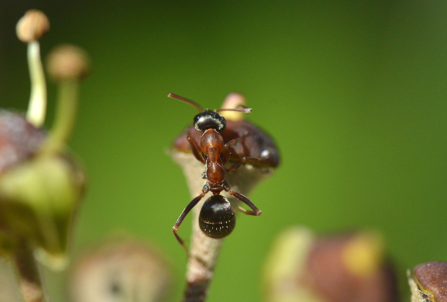 Fig 2. Obrera de la especie Formica rufibarbis en una flor de hiedra (Hedera helix)./ C. Pradera 11-2017
