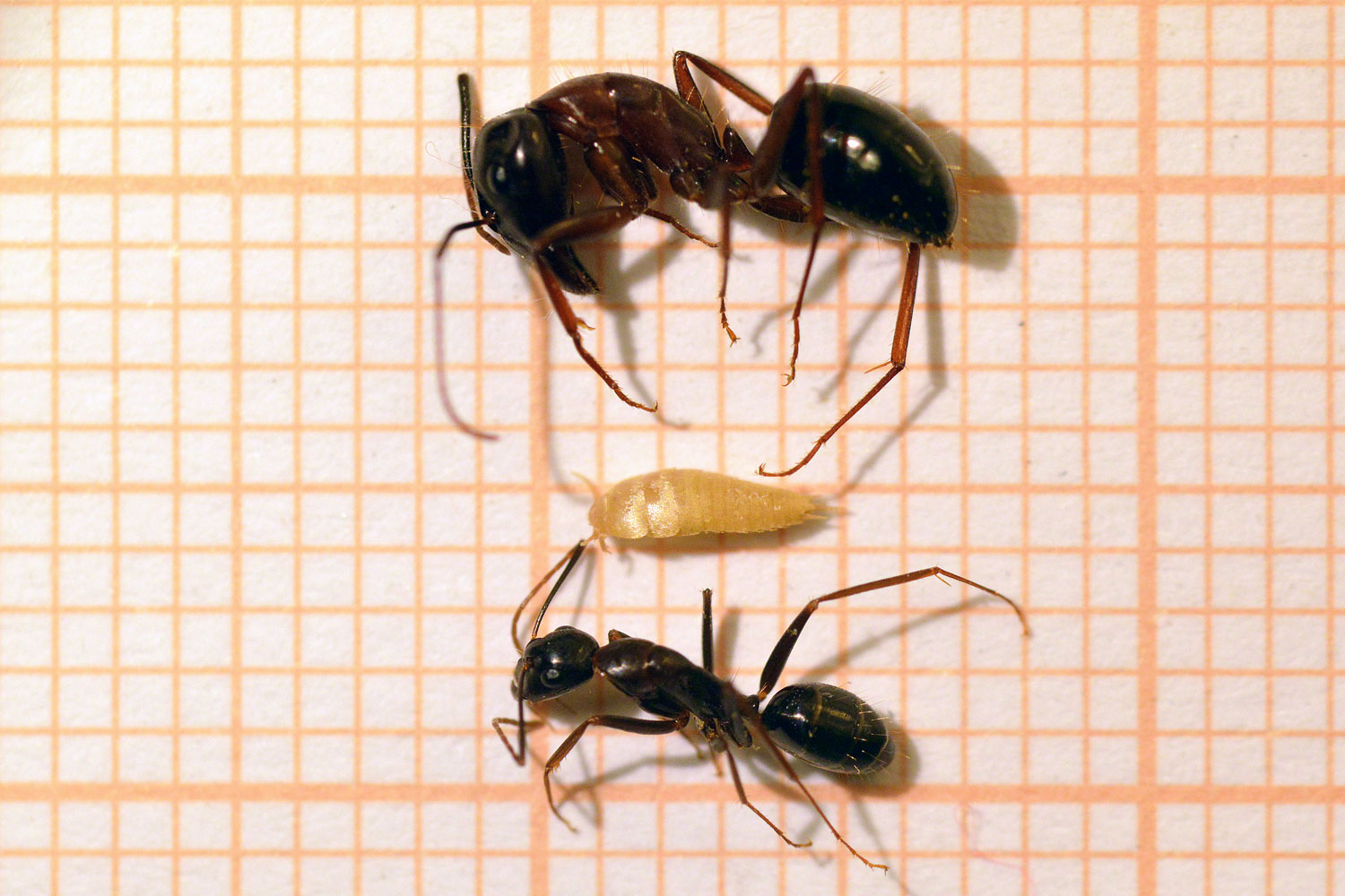Fig 1. Comparación entre Proatelurina pseudolepisma y obreras de Camponotus sylvaticus./ C. Pradera 12-2017