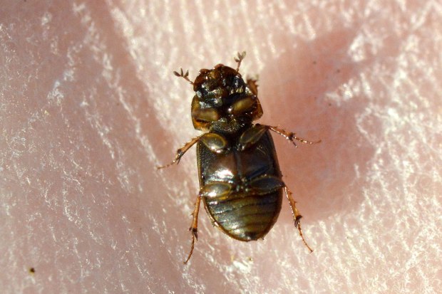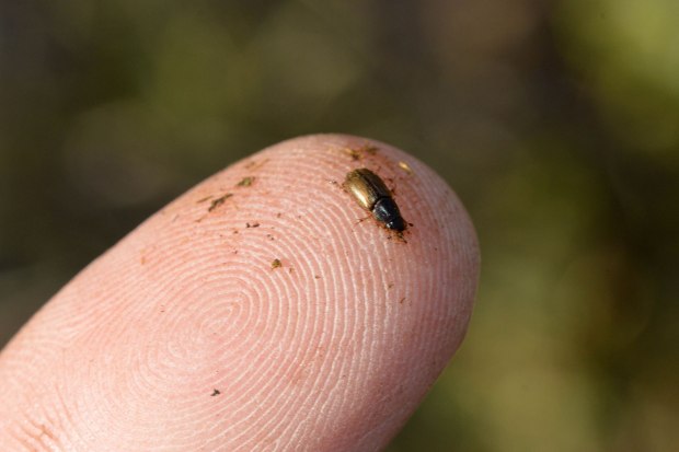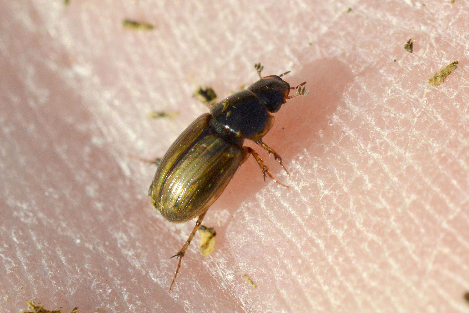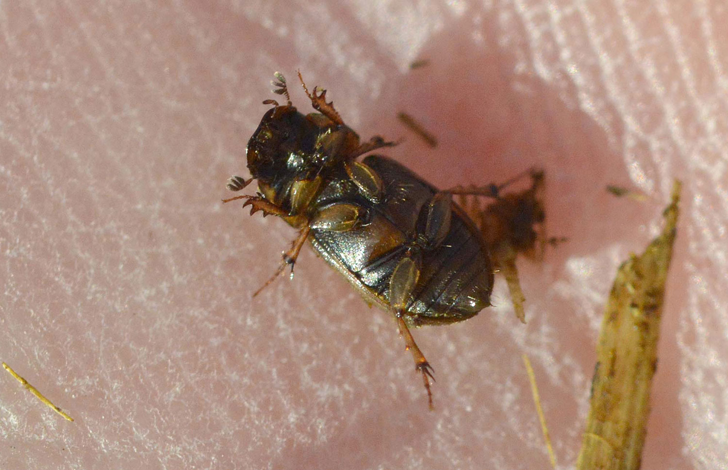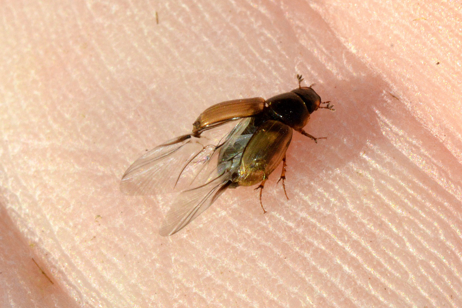 Lo que he encontrado son coleópteros del género Aphodius (Scarabaeidae). Este género está formado por un gran número de especies. De hecho, en la Península Ibérica pasa su número del centenar. Son escarabajos coprófagos que se alimentan y completan su ciclo en excrementos. Y es por ello que son clasificados como endocópridos. Término que permite separarlos de los telecópridos (rodadores) y de los paracópridos (enterradores). La hembra deposita los huevos sobre la superficie del excremento. La larva se desarrolla en su interior y pasa por tres estadios larvarios. Y cuando ha de pupar, la larva se queda en el excremento o se entierra en el suelo.