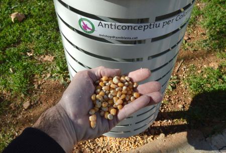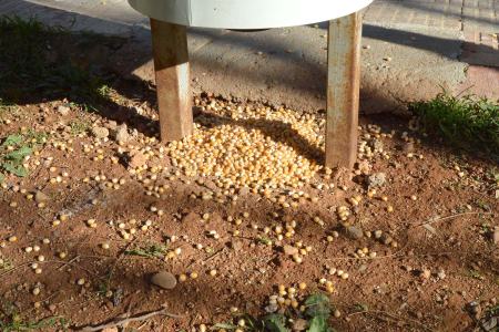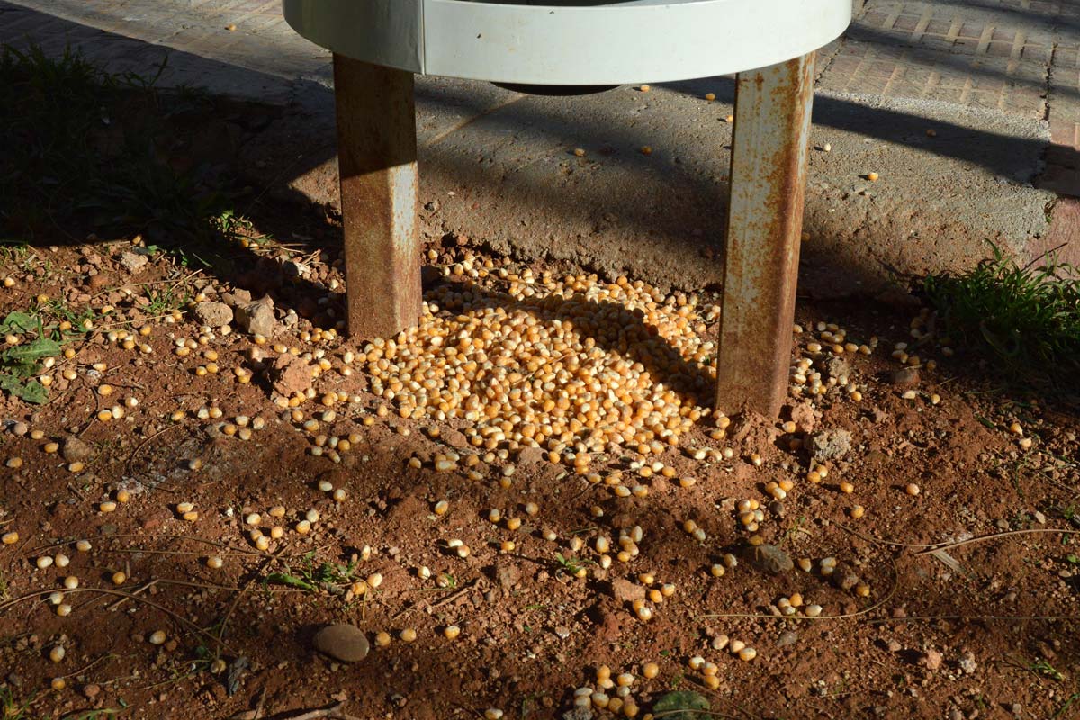 El pasado martes 18 de enero de 2018 a las 11:30 de la mañana estuve en Badia del Vallès (Barcelona). Fui a realizar una revisión a un cliente que se encuentra cerca de un dispensador de cebo quimioesterilizante para paloma doméstica (Columba livia) de la marca Ovistop. Este dispensador se encuentra situado detrás del cuartel de la Guardia Civil de Badia. Hacía un año y medio que no pasaba por allí. Y mi sorpresa fue que me encontré la misma situación [1]. Debajo del dispensador se acumulaba gran cantidad de producto en el suelo, es decir, de maíz impregnado en nicarbacina.