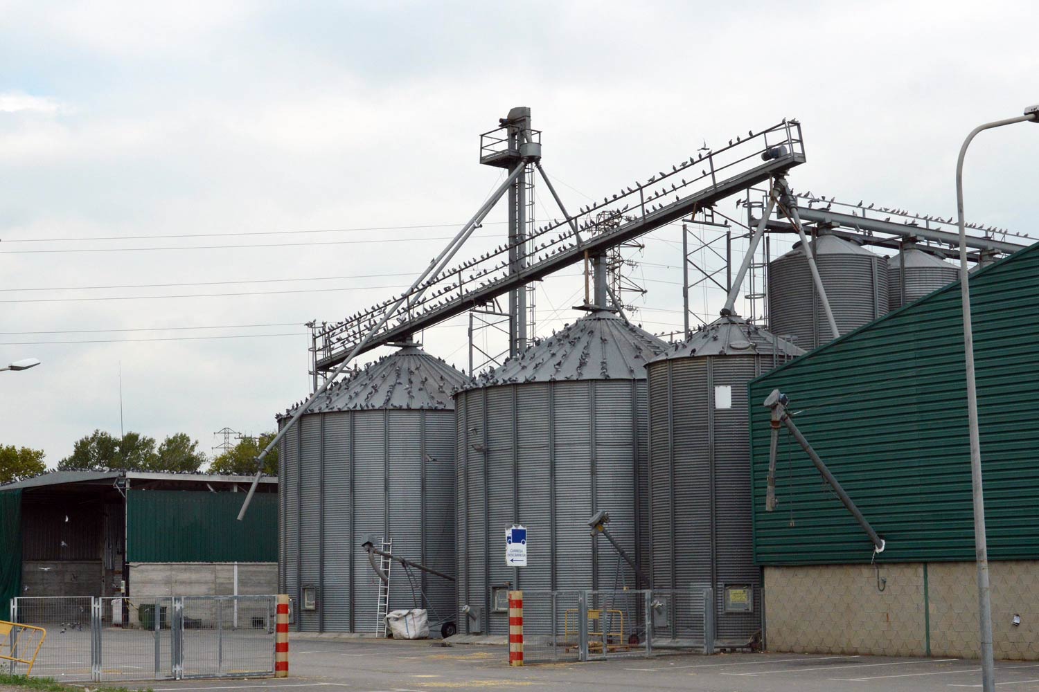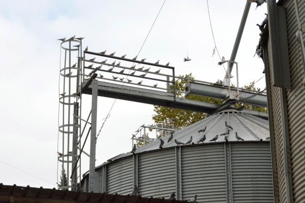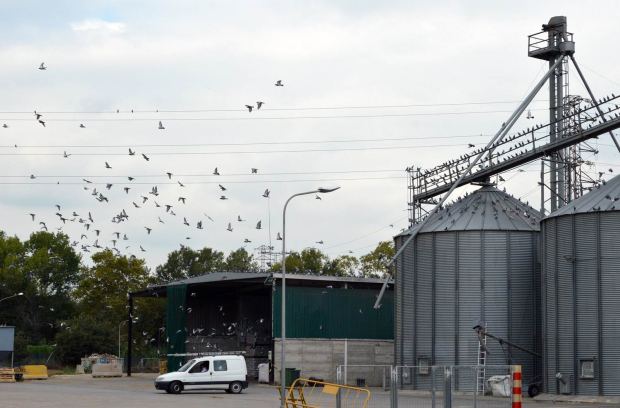 Por supuesto, la presencia de aves en la zona era debida al grano y pienso almacenado en los silos y almacenes. Sin embargo, su gran número me hizo pensar que se estaba echando a perder gran cantidad de alimento debido a unas inadecuadas condiciones de almacenamiento y de carga de grano. Por otra parte, las palomas que allí se encontraban no solo debía criar en la zona, sino que debían provenir de diferentes puntos de la cercanía. Desconozco si los responsables de esta agrotienda han tomado algún tipo de medida para minimizar la presencia de palomas. Aunque por la situación que observé, parece que si algo han hecho, no ha dado resultado. Está claro que la única medida viable sería limitar el acceso de las aves a la fuente de alimentación.
