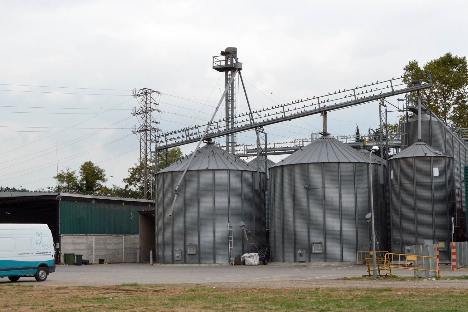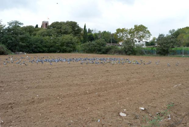 El pasado mes de octubre de 2017 pasé por La Perpetuenca [1], una importante y conocida agrotienda situada en la carretera de Sabadell, km. 4, de Santa Perpètua de Mogoda (Barcelona). Debían ser cerca de las tres de la tarde. Al aparcar el vehículo en el lateral del edificio pude observar una gran bandada de paloma doméstica (Columba livia) en los silos que quedan en la parte de atrás. Picado por la curiosidad, observé la situación cámara en mano. Me quedé impresionado por la gran cantidad de palomas que había. Y en menor medida, también había un buen número de tórtola turca (Streptopelia decaocto).