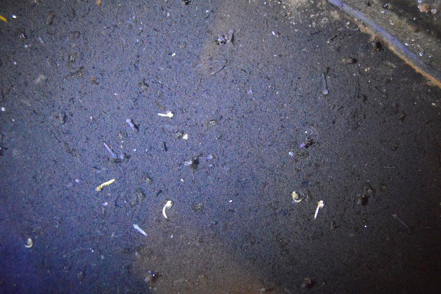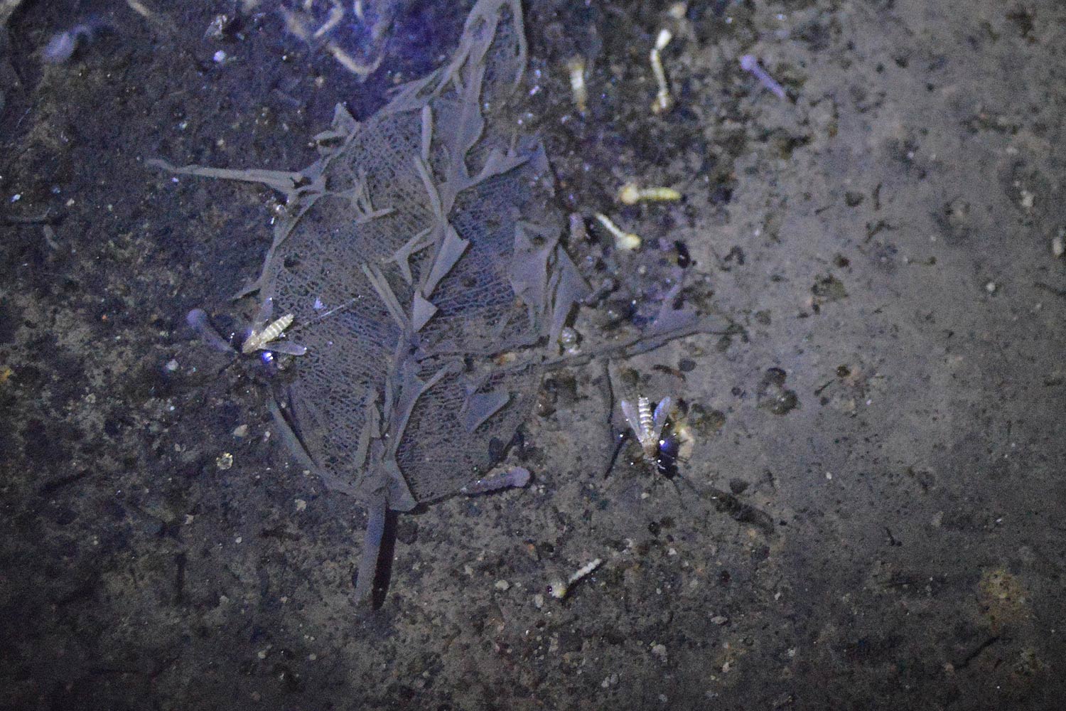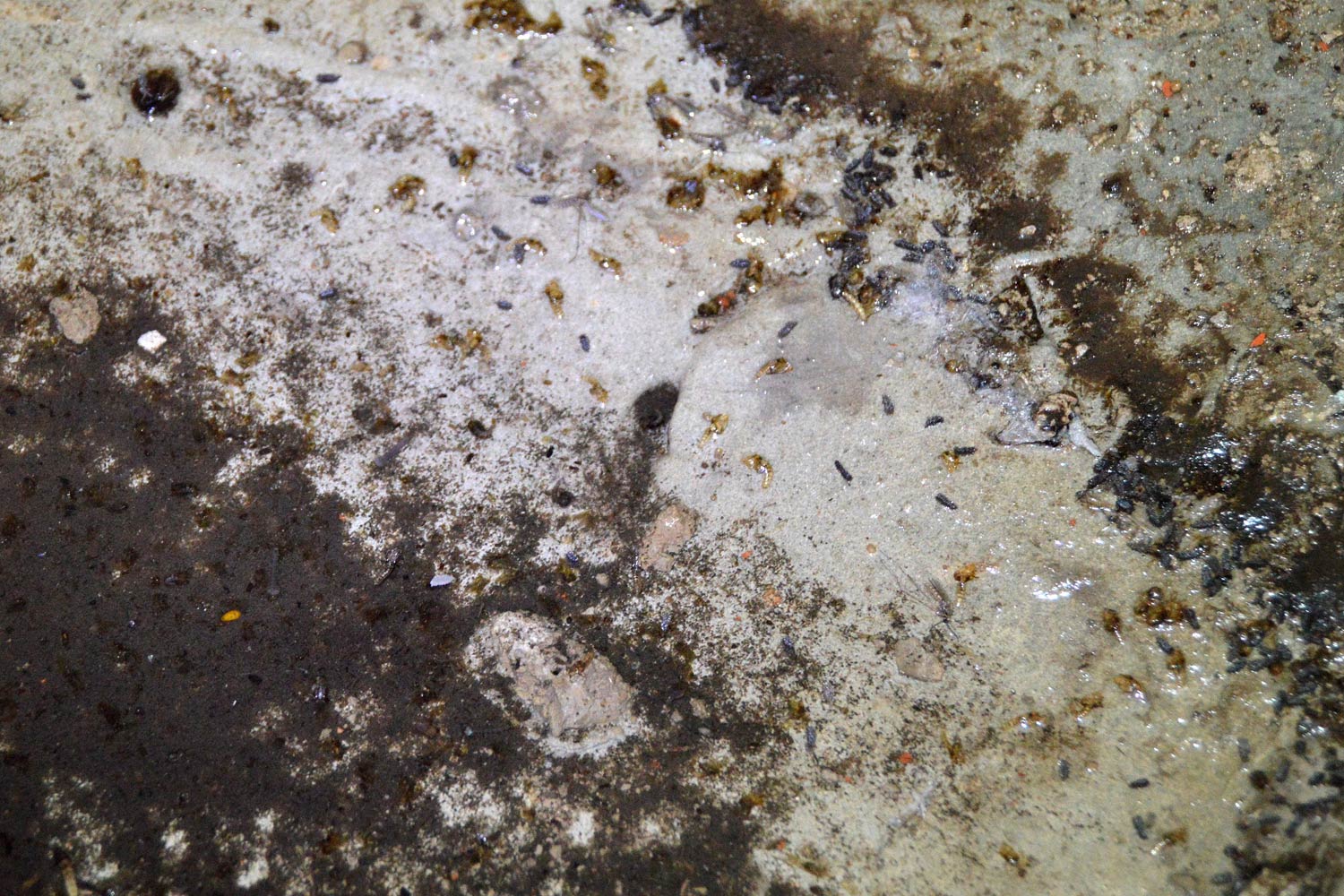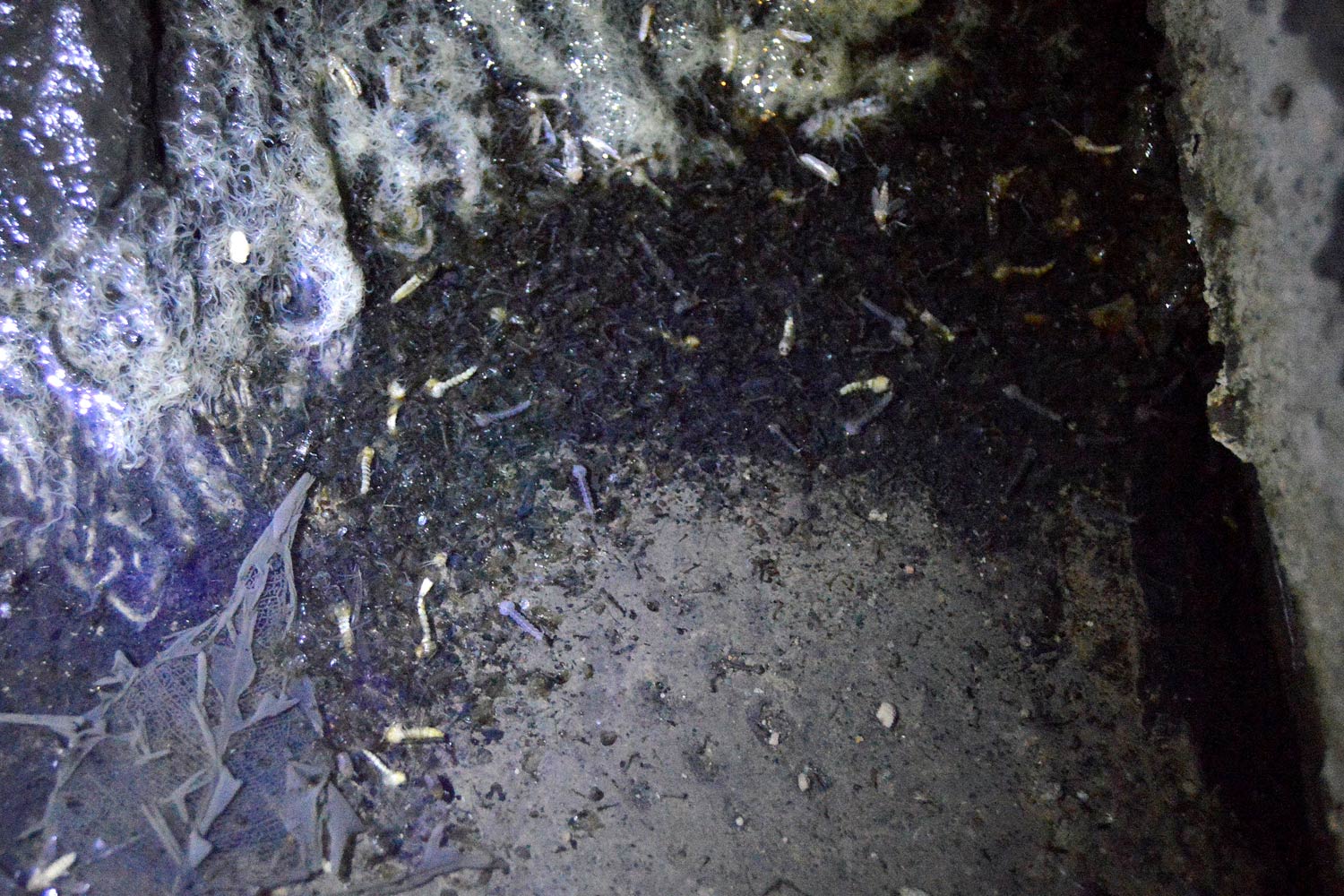 Nada más levantar la rampilla, nos dimos cuenta de que estaban criando allí. Bajamos y vimos que el sótano se encontraba inundado de agua con una profundidad de 2 a 3 centímetros (figuras 1 y 2). Una pérdida de origen desconocido había aportado agua suficiente y sostenida en el tiempo como para que los mosquitos se desarrollaran en varias generaciones. La hembra de Culex pipiens puede llevar a cabo su primera puesta sin necesidad de ingesta de sangre (puesta autógena), debido a las reservas acumuladas durante su desarrollo como larva. Esto permite que esta especie se pueda desarrollar aisladamente si las aguas contienen todo el alimento necesario [1].
