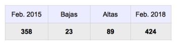 En la figura 2, se pueden ver unos datos que resumen el paso de estos tres años. En febrero de 2015, había 358 registros. Y ahora en febrero de 2018 son 424. Por tanto, ha habido un aumento de 66 registros, es decir, un aumento del 18’7%. Se trata de un buen dato. Si hay más empresas registradas, significa que el mercado las necesita. Hay más clientes que demandan servicios DDD. Otro dato interesante es saber cómo han aumentado los registros. Y se constata que, durante este período, se han dado de baja 23 empresas y se han dado de alta 89. Esto significa que cada año se habrá perdido entorno al 2% de los registros. Un porcentaje que me parece bajo.