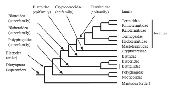 Desde hace décadas se debate sobre la relación entre cucarachas y termitas. La nueva clasificación responde a la acumulación de evidencias científicas. La más decisiva ha sido el estudio sobre ADN. En 2007, D. Inward, G. Beccaloni y P. Eggleton publicaron un amplio estudio sobre filogenética titulado «Death of an order» [3]. En la figura número 2, se puede ver la clasificación que estos autores propusieron. Como se puede ver, las familias que están agrupadas bajo el orden Isoptera pasan a estarlo bajo la epifamilia Termitoidae. Y esta epifamilia se encuentra directamente relacionada con Cryptocercoidae, la cual agrupa las cucarachas de un único género Cryptocercus que se alimentan de madera. Por tanto, las termitas no serían más que unas cucarachas que evolucionaron hacia una «elegante» vida social.