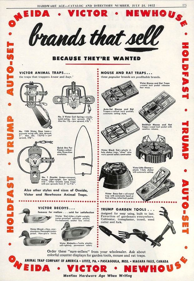 En 1924, la Oneida Community Ltd vendió a tres trabajadores el negocio de trampas para ratas y ratones. La nueva compañía fue llamada Animal Trap Company of America, la cual siguió radicada en Lititz. Poco después, Oneida Community Ltd vendió lo que le quedaba del negocio de trampas. Por esta época aparecieron nuevos diseños de cepos de tablilla bajo la marca Victor. La compañía creció, creó nuevos centros de producción y diversificó su oferta. En 1966 se hizo necesario un cambio de nombre y pasó a denominarse Woodstream Corporation. A partir de aquí la historia es conocida. Esta importante empresa creció y adquirió nuevas líneas de negocio. En la actualidad tiene en su cartera marcas bien posicionadas como Victor, Terro o Mosquito Magnet.