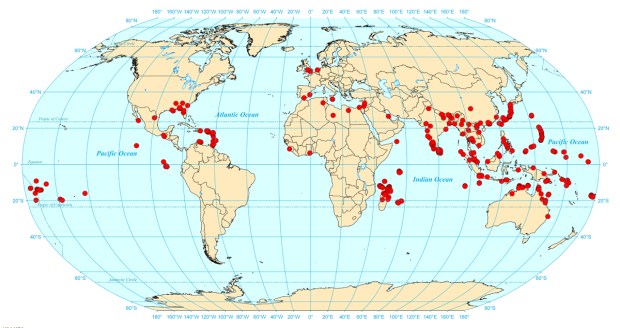 Esta especie fue estudiada por James K. Wetterer [2], quien publicó en 2010 un artículo sobre su distribución. Recogió más de 400 registros de todo el mundo y llegó a la conclusión de que tenía su origen en el Sudeste asiático. En la imagen número 3, se puede ver una reproducción del mapa de distribución elaborado por este autor. Abundan las citas en esa zona tropical de Asia. Desde allí habría sido llevada a otras partes del mundo con un clima parecido donde se habría adaptado bien. Por supuesto, las ciudades también tienen espacios húmedos y calurosos que pueden dar la oportunidad de que esta especie se pueda establecer. Y esto ha permitido que se encuentren registros más al norte de lo que debiera de estar en un medio natural. Allí donde se ha instalado parece que no ha tenido un gran impacto como para ser considerada especie invasora.