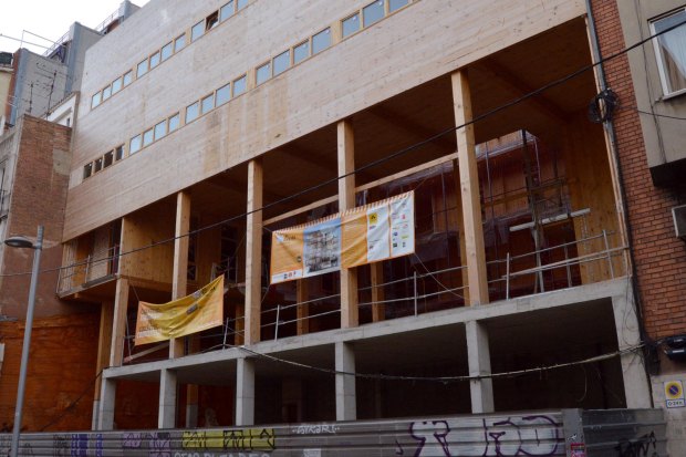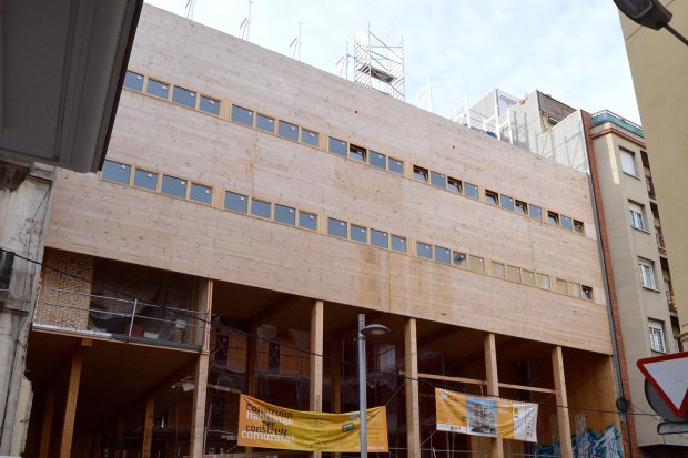 En el número 83 de la calle Constitución de Barcelona se está construyendo un edificio excepcional que está a pocos meses de su finalización. En primer lugar, se trata de un edificio de madera. Y consta que será el más alto construido en este material hasta la fecha en España. Tendrá planta baja y seis plantas. Y albergará 28 viviendas. En segundo lugar, está la voluntad de su promotor, la Cooperativa la Borda [1], para que sea un espacio de convivencia en comunidad. Habrá hasta 250 metros cuadrados de espacios comunitarios: cocina, comedor, lavandería, sala polivalente, aparcamiento, etc [2]. Cada vivienda se cederá en uso. No se podrán comprar ni alquilar. Por supuesto, para una mentalidad singular, era necesario un edificio singular.
