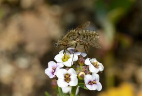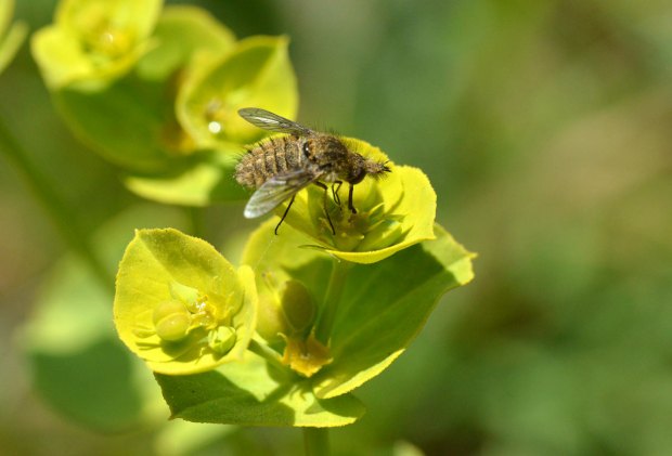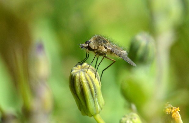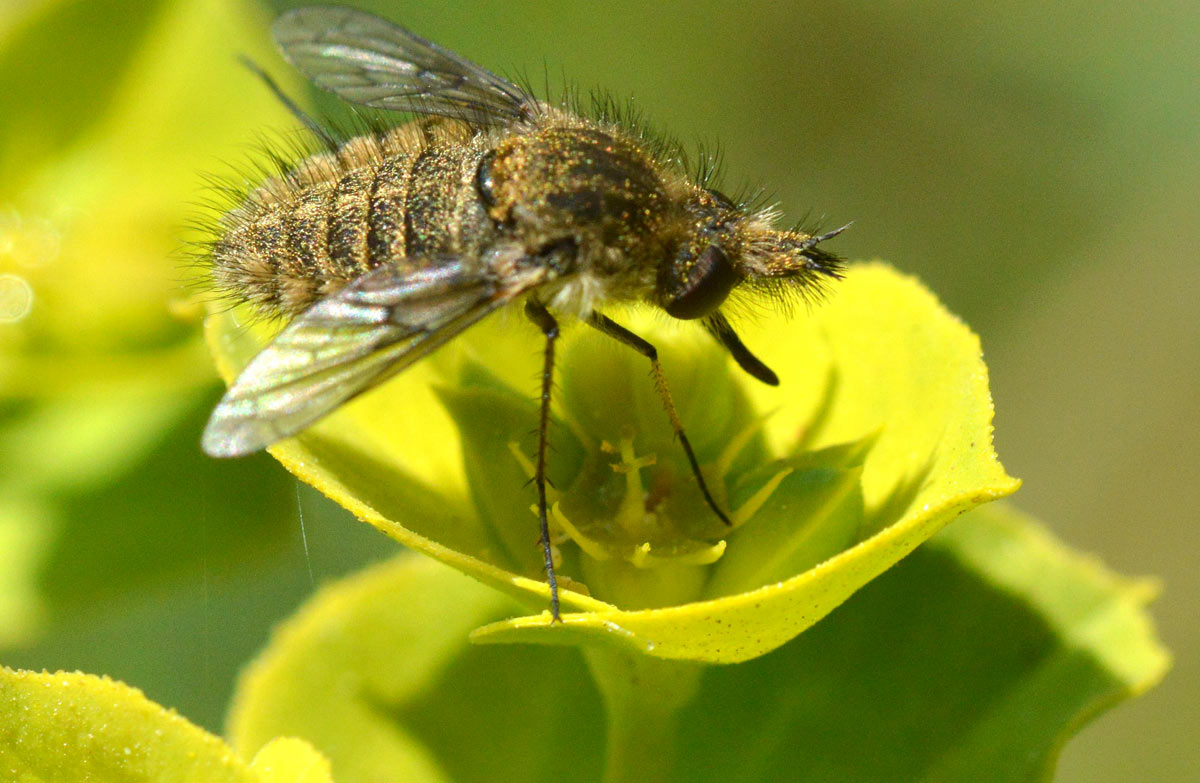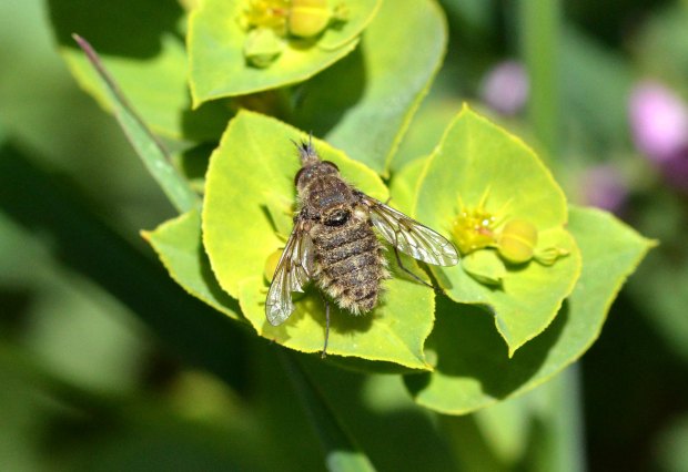 He dedicado varias entradas a los bombílidos (Bombyliidae). Y las que dedicaré. Porque es una de las familias de dípteros (Diptera) que me resulta más interesante. Me parecen todos de gran belleza. Y además son bastante desconocidos. Tienen una reproducción un tanto complicada, ya que las larvas de bombílido son depredadoras de huevos y larvas de otros insectos. Esto limitará su distribución a las zonas donde se encuentren los insectos que parasitan.