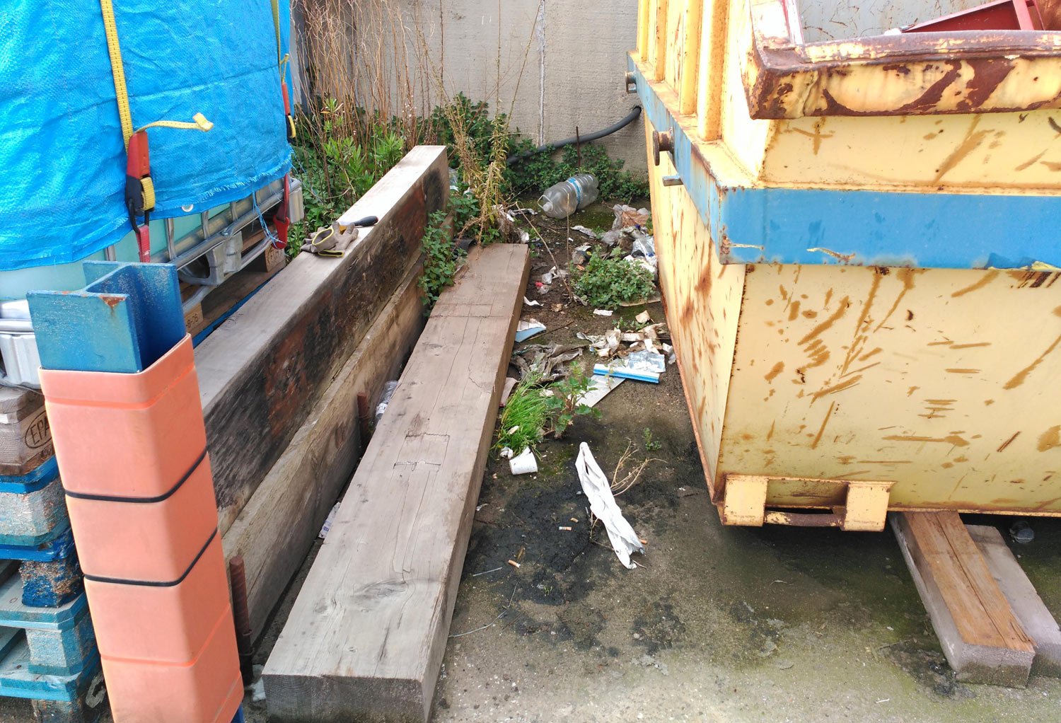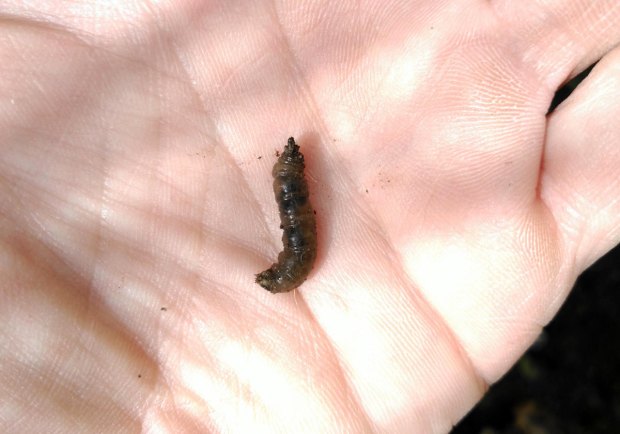 En la imagen número 1, se puede ver una zona de basuras a la sombra. Crece vegetación y se mantiene la humedad. En la parte central de la imagen, se puede un tablón. Debajo de este, en el mes de enero pasado encontré dos larvas de tipúlido (Tipulidae). Las recogí y me las llevé a casa. Observando la forma de su parte posterior, deduje que bien se podía tratar de ejemplares del género Tipula.