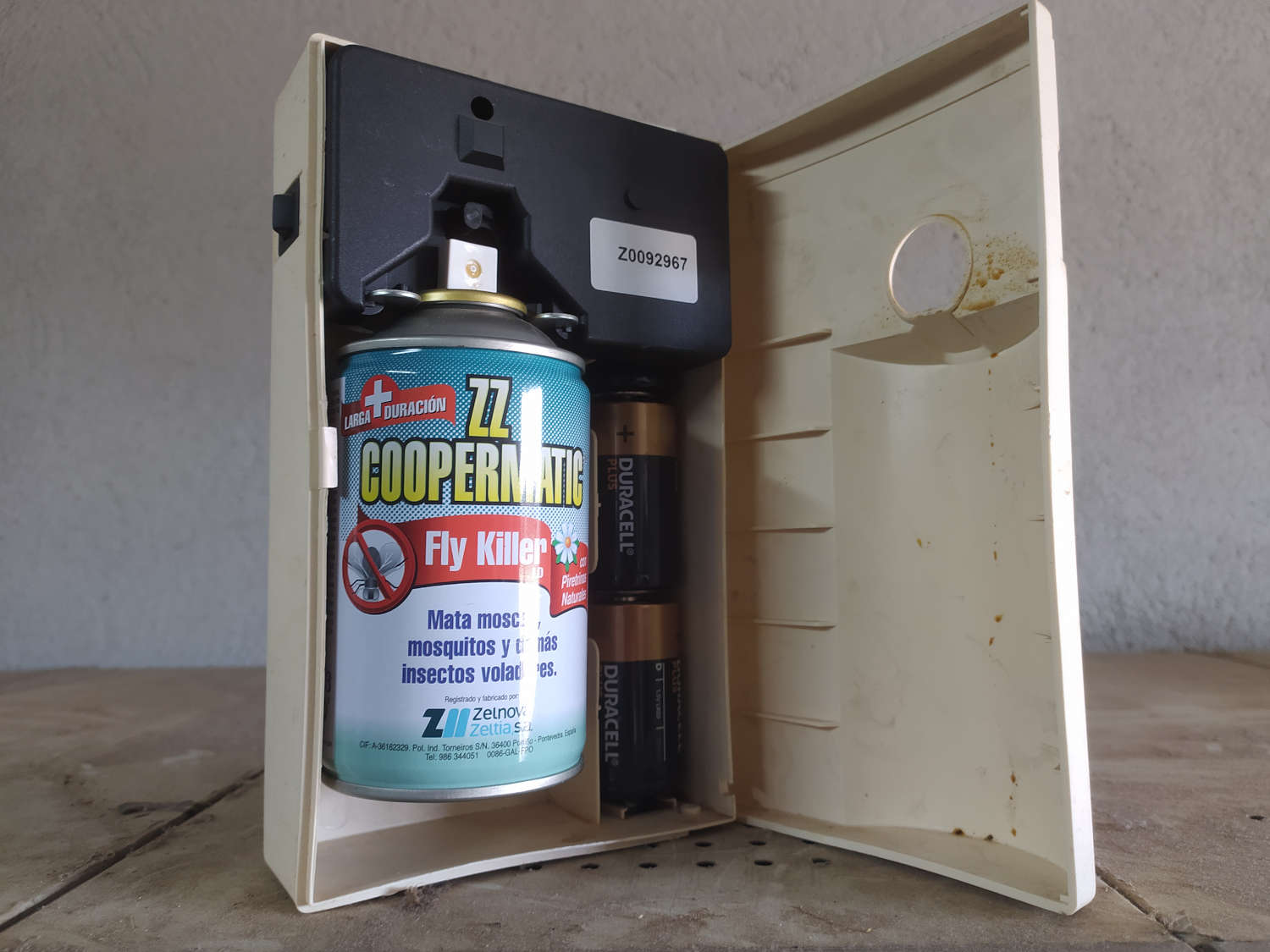 Hace un par de semanas entré en una tienda centenaria de un pequeño pueblo. Sobre una estantería pude ver un viejo aparato Coopermatic (figura 1). Acumulaba algo de suciedad y manchas posiblemente provocadas por la liberación del formulado insecticida. Junto al aparato había dos envases de ZZ Coopermatic, producto insecticida que va dentro del dispensador electrónico. Como bien sabemos, este tipo de aparatos que dispensan insecticidas en continuo no se pueden utilizar en comercios. Y menos si se dedican a la venta de alimentos. En fin, allí estaba el Coopermatic que, por lo menos, debía llevar una década funcionando.