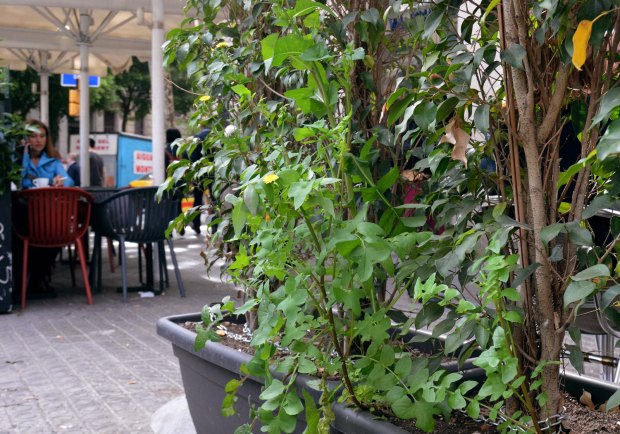 Fig 1. Plantas en una jardinera de un bar en Barcelona./ C. Pradera 04-2018
