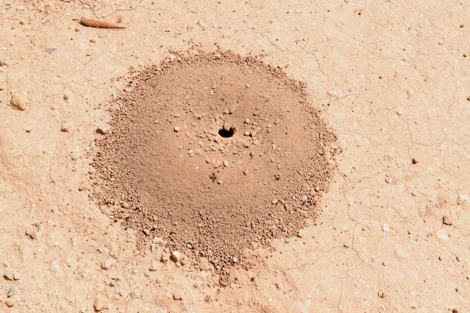 Una característica de esta especie es que las obreras alzan el gastro apuntando hacia arriba cuanto se encuentran en movimiento. Esto se puede apreciar en algunas de las imágenes de esta entrada (figuras 5 a 9). Este comportamiento lo comparten con otras especies afines que se encuentran dentro de lo que se denomina grupo albicans, en honor a C. albicans, especie desertícola abundante en el norte de África [2]. Esta especie es monogínica y polidómica. Es decir, tiene una sola reina, pero construye varios nidos satélite. Sin embargo, en uno solo se aloja la reina. Esto implica que las obreras deben visitar frecuentemente a la reina para conservar el olor de la colonia. La entrada, como en otras Cataglyphis, es un simple agujero en el suelo. En la imagen número 4, se puede ver una piedra bajo la cual encontré obreras. Fue por casualidad que la levanté. Sin embargo, la entrada del nido no estaba pegada a la piedra, sino algo alejada.