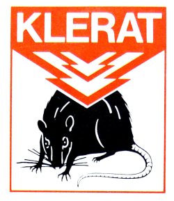 KLERAT es una antigua marca de rodenticidas que todavía se mantiene activa en el mercado. Desde un punto de vista histórico es importante por dos razones. En primer lugar, porque bajo la marca KLERAT fue formulada una gama de rodenticidas con la novedosa sustancia activa llamada brodifacoum, anticoagulante de segunda generación que fue sintetizado a mediados de la década de 1970. En segundo lugar, porque KLERAT tuvo un formulado en bloque que, según creo yo, debió de ser de los primeros bloques rodenticidas en aparecer en el mercado. Desde que fue comercializado, KLERAT BLOCK mantiene la misma forma de hexaedro aplanado, el mismo color azul y el mismo dibujo de una calavera con dos tibias como advertencia de peligro. Y además introducía la novedad de tener una perforación en su parte central para que pudiera ser fijado mediante clavo, alambre o cuerda con el fin de evitar que fuera a parar donde no debía.